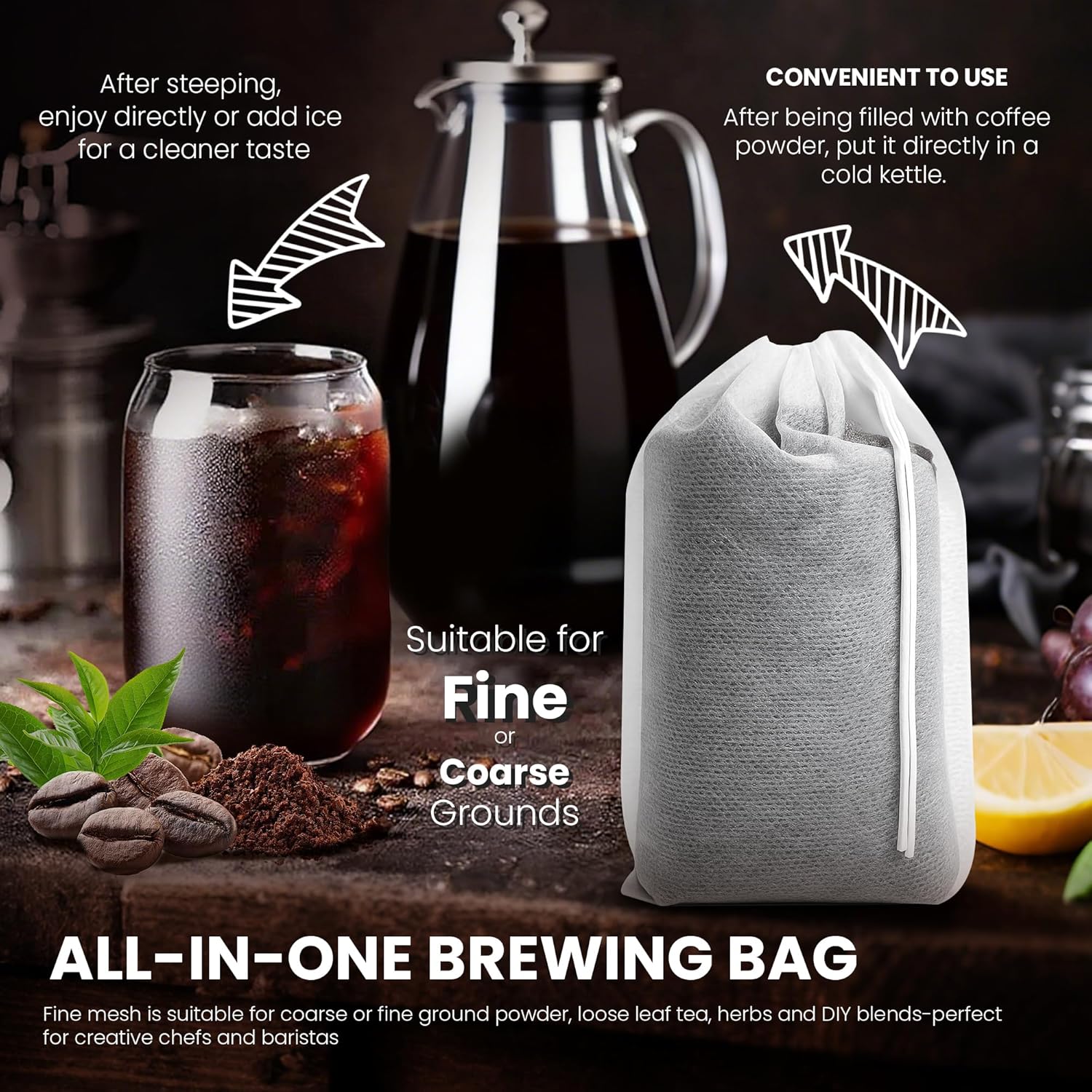 Multi-Purpose Brewing – Beyond cold brew, use as disposable tea bags or spice pouches for herbs, loose tea, or soup infusions, adding versatility to your kitchen