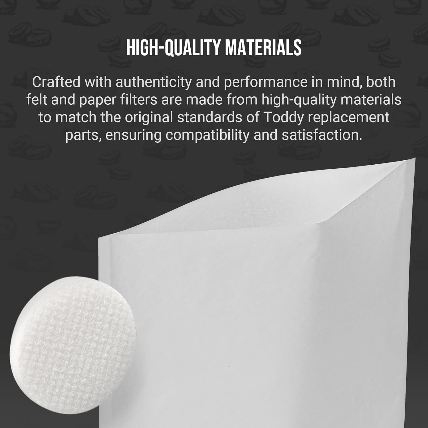 High-Quality Materials: Crafted with authenticity and performance in mind, both felt and paper filters are made from high-quality materials to match the original standards of Toddy replacement parts, ensuring compatibility and satisfaction.
