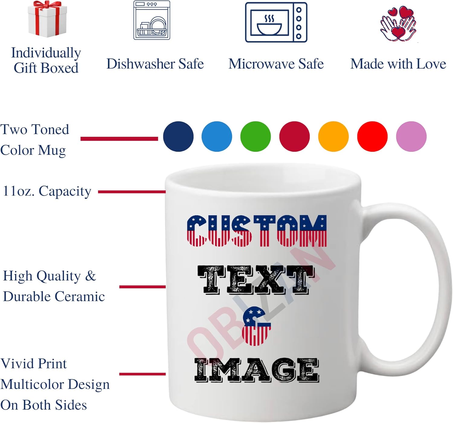 Obizan Personalized Coffee Mug, Add Custom Picture Text or Logo, Customized Gift for Men & Women