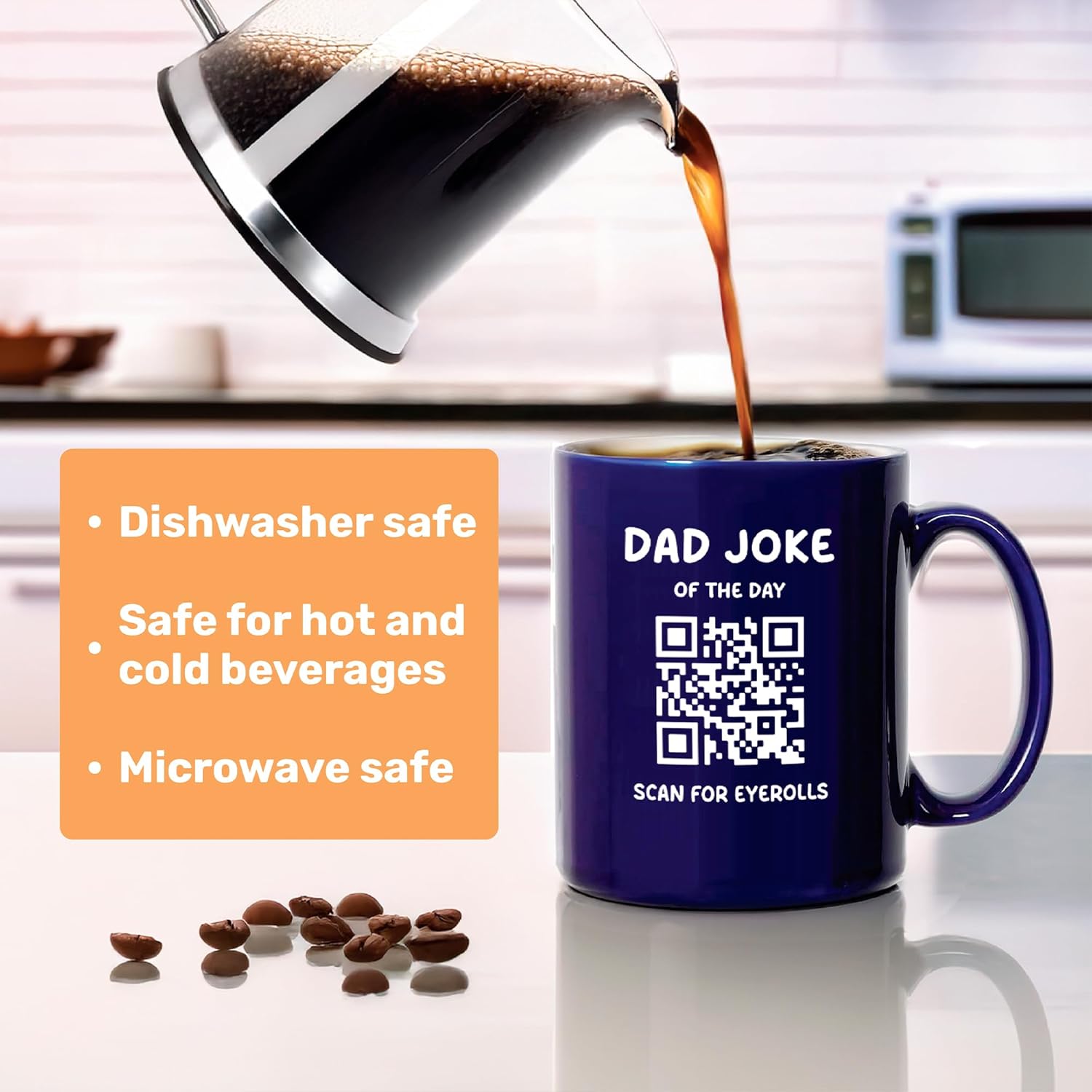 Daily Dad Joke Mug | Funny Coffee Mug Gift For Father’s Day, Birthdays & Christmas, Best Daddy Ever QR Code Cup From Son, Daughter or Wife | New Hillarious Jokes Everyday