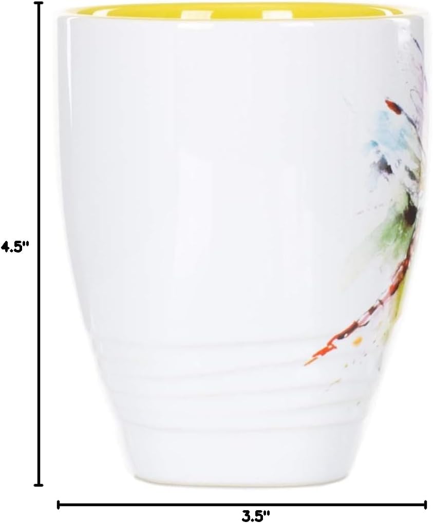 Dean Crouser Dragonfly Watercolor Yellow On White 16 Ounce Glossy Stoneware Mug With Handle