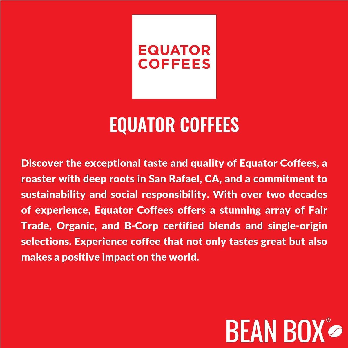 Ethically sourced and roasted by Equator Coffees in San Rafael, CA