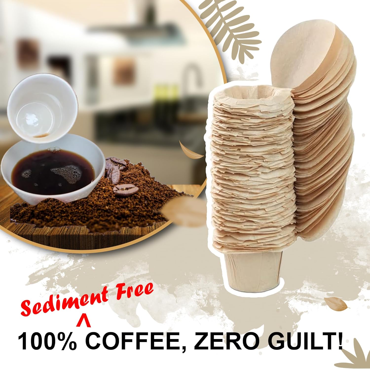 Our filters strike the perfect balance—they’re not too thin to leak and not too thick to weaken your coffee. They trap most coffee grounds, delivering a rich, silky taste with every cup. Plus, they’re fully biodegradable and recyclable, so you can enjoy your coffee without harming the environment.