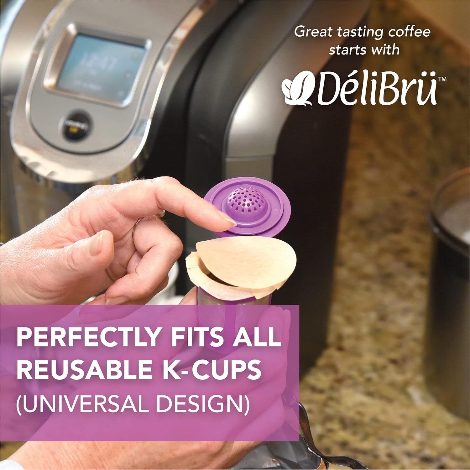 Delibru’s natural brown filters are Chlorine and Bleach Free. These Unbleached paper filters fit all reusable k cups in the market.