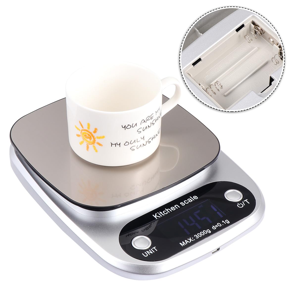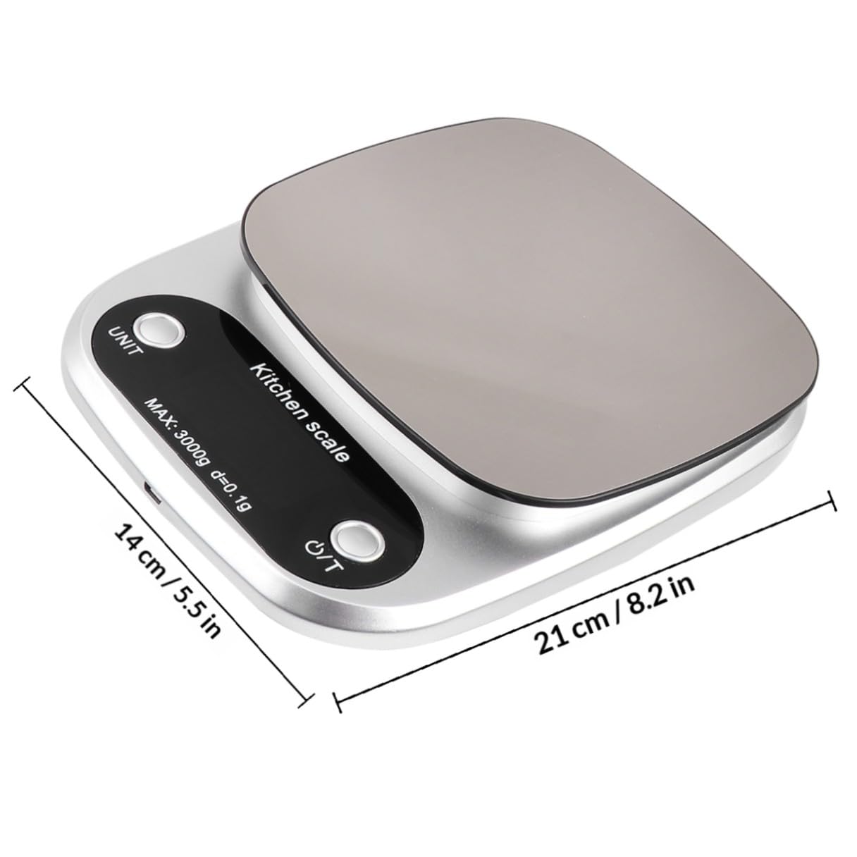 Digital Kitchen Food Scale 3kg/0.1g Rechargeable Stainless Steel Precision Baking Scale with LCD for Cooking and Coffee Measurement
