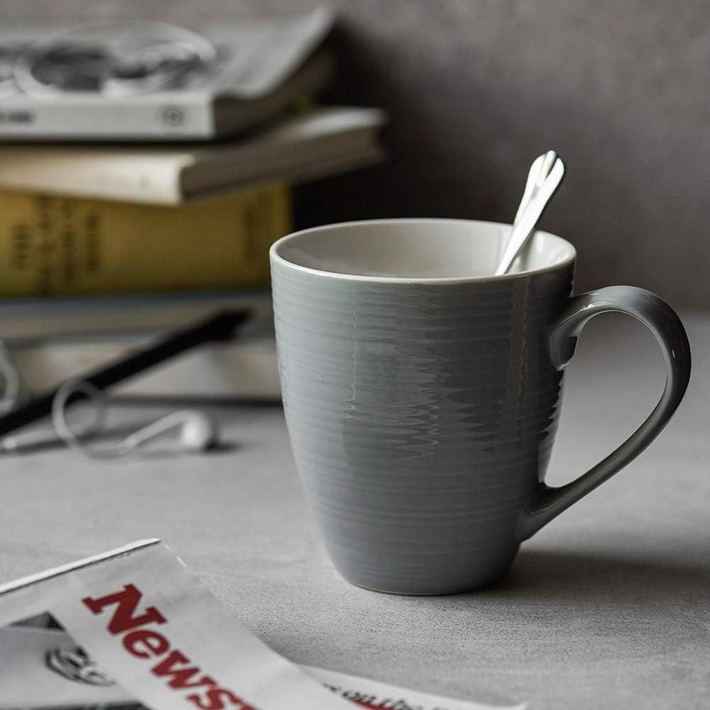 DOWAN Coffee Mugs, 17 Oz Coffee Mug Set of 6, Corrugated Tea Mugs (Grey)