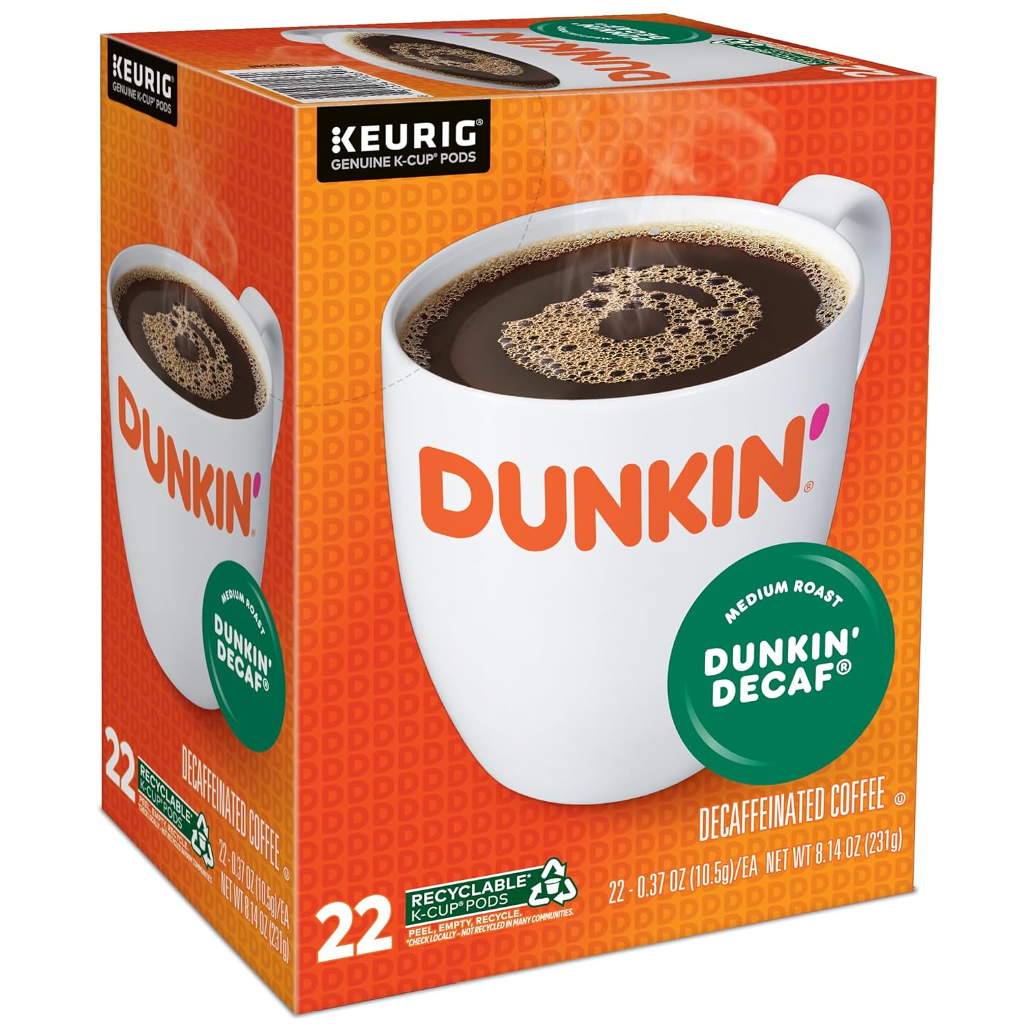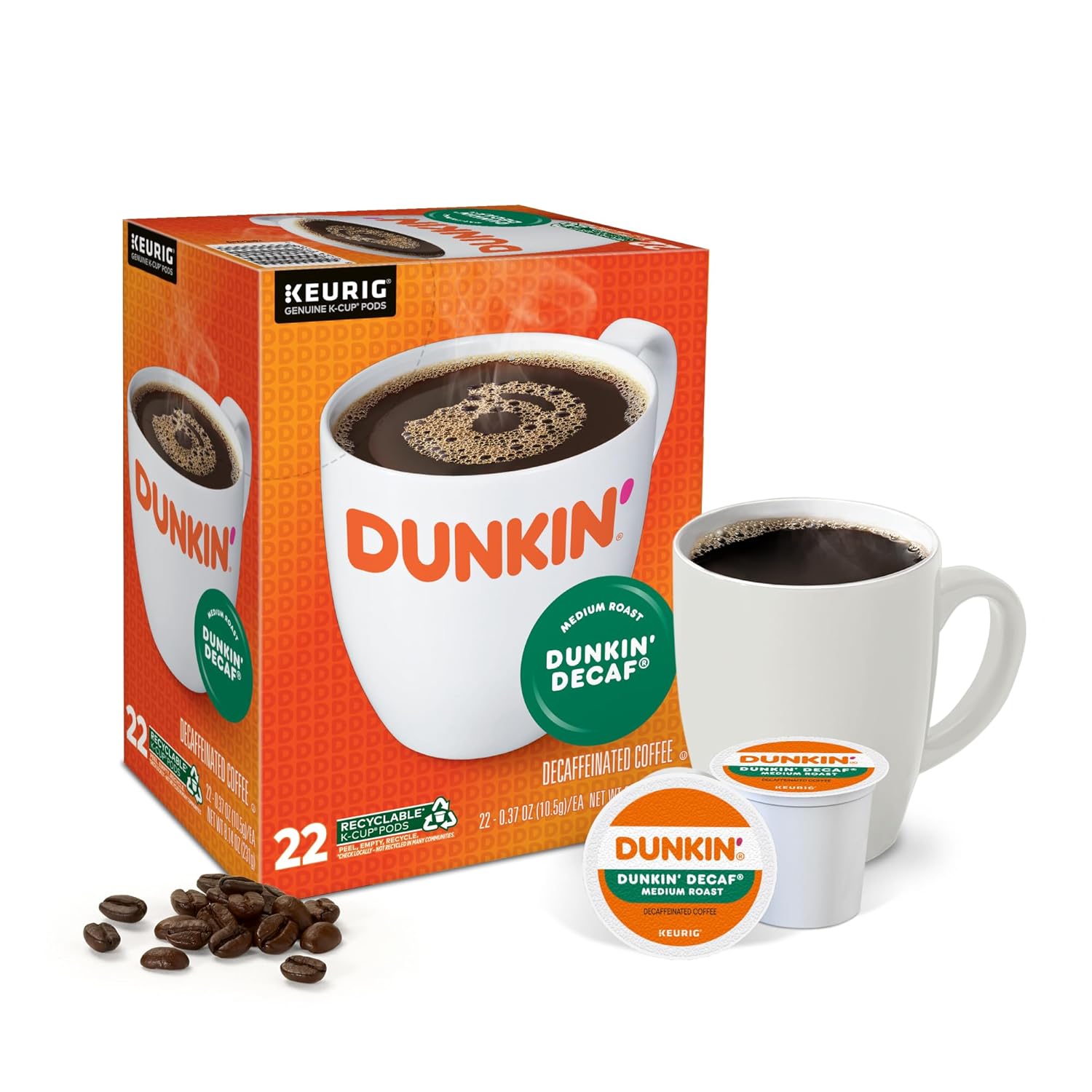 Wake up with the Dunkin Donuts Decaf Single-Serve Coffee K-Cup. Savor the rich, smooth flavor with each sip. Medium roast delivers a delicious taste. K-Cup works with compatible single-serve Keurig brewers. Decaf coffee lets you enjoy the classic flavor without the caffeine.