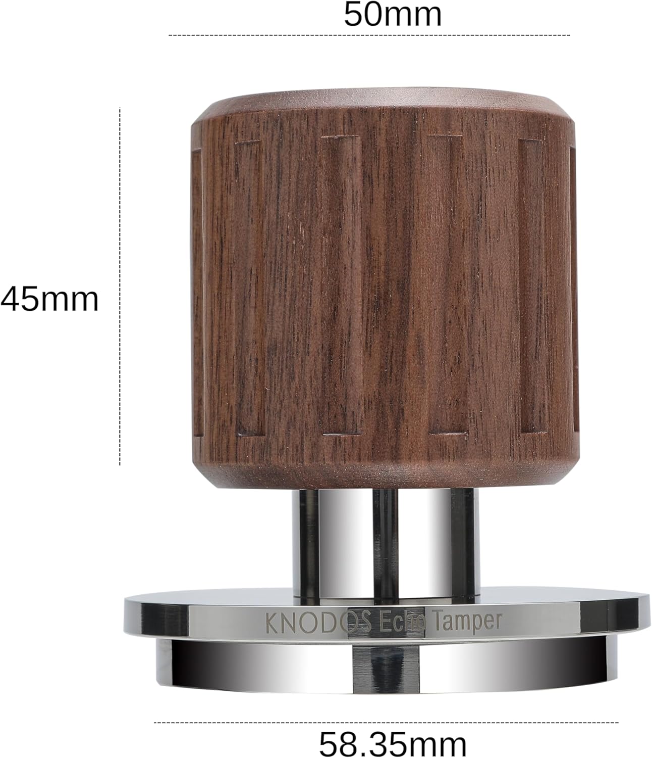 PREMIUM WALNUT HANDLE & STAINLESS-STEEL BASE Beautiful walnut handle provides warmth and comfort, while the heavy stainless base offers stability and balance. The professional design feels solid in hand and complements any espresso setup — durable enough for daily use at home or in cafés