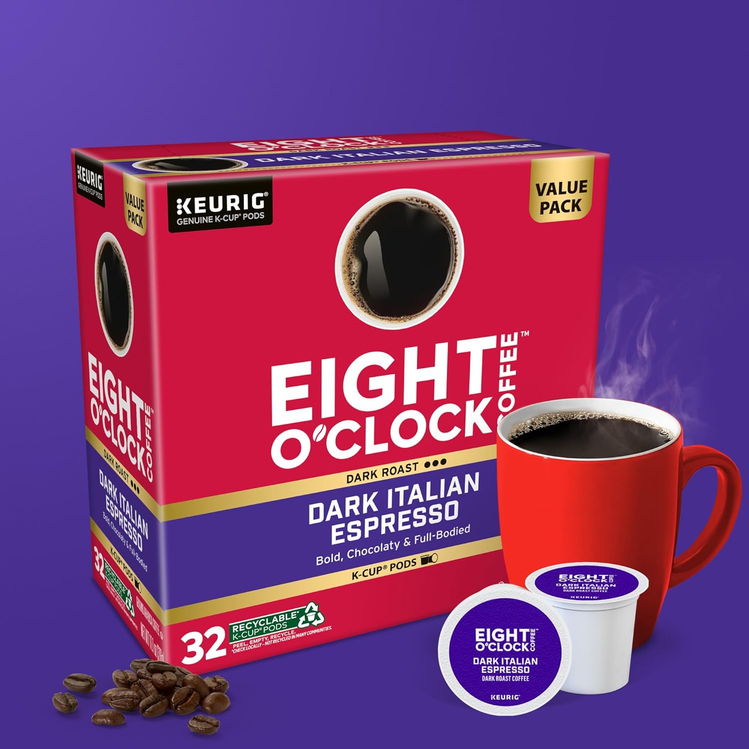 Eight O’Clock Dark Italian Espresso Coffee, Keurig Single Serve K-Cup Pods, Dark Roast, 32 Count