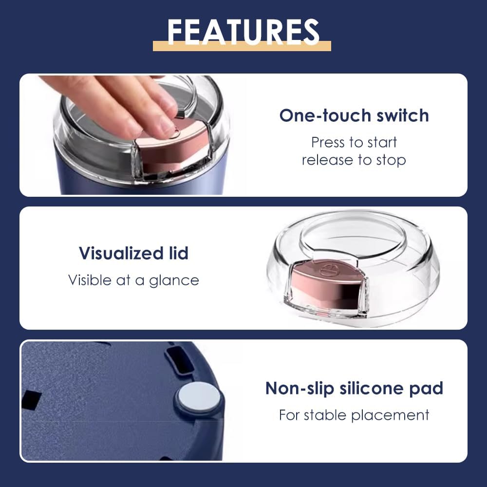 🔧 One-Touch Operation: Simple start/stop control with a single button. Easy to use—just add ingredients, close the lid, press to grind. Suitable for beginners and experts alike.