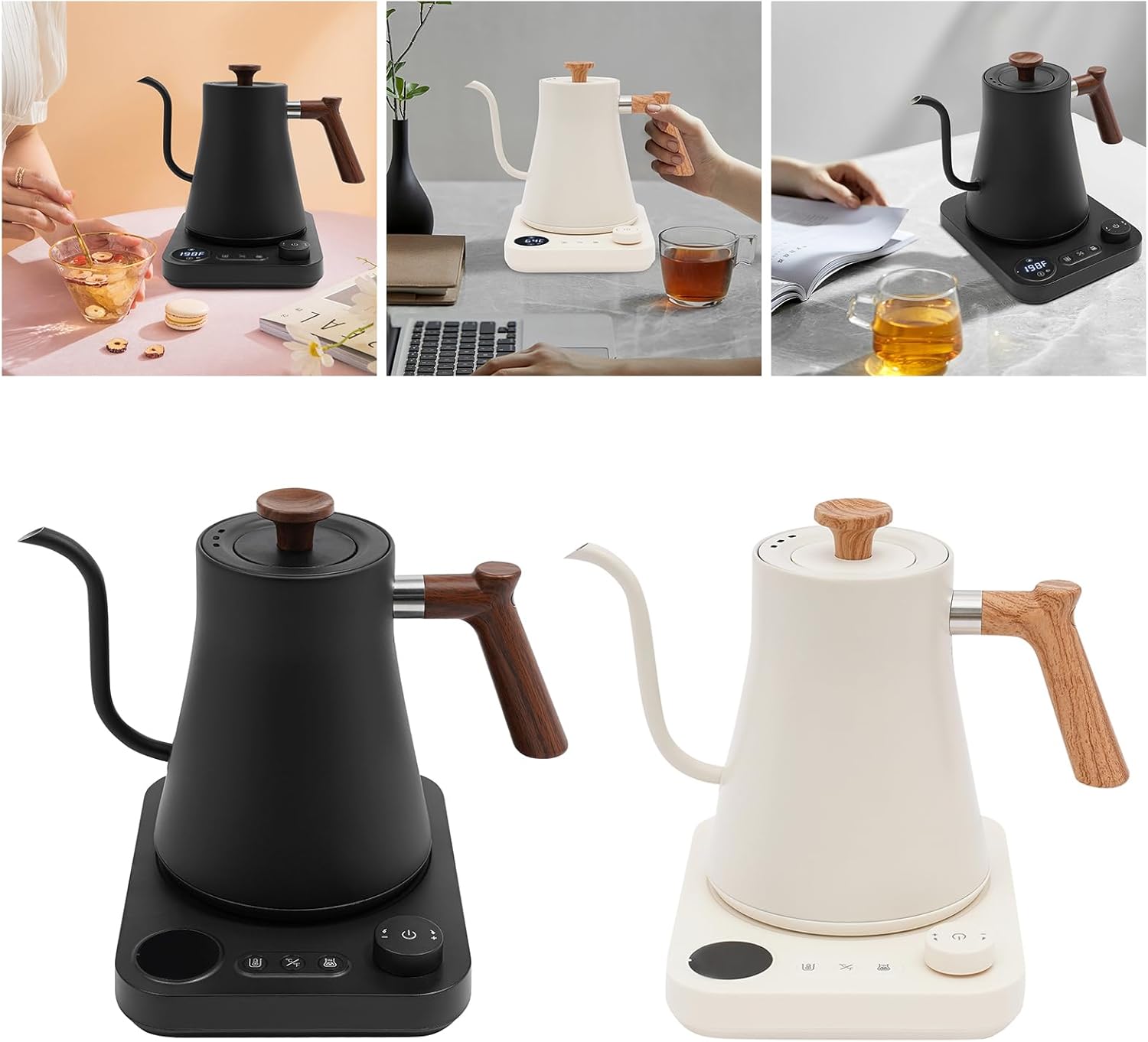 Thoughtful Design: The unique gooseneck spout design supports the water at a 90° angle, making it easier and more friendly to control the flow speed when pouring water. The LED display displays real-time temperature to keep you informed of heating progress. In addition, during use, you can turn off the buzzer with one click to enjoy the quiet brewing time.