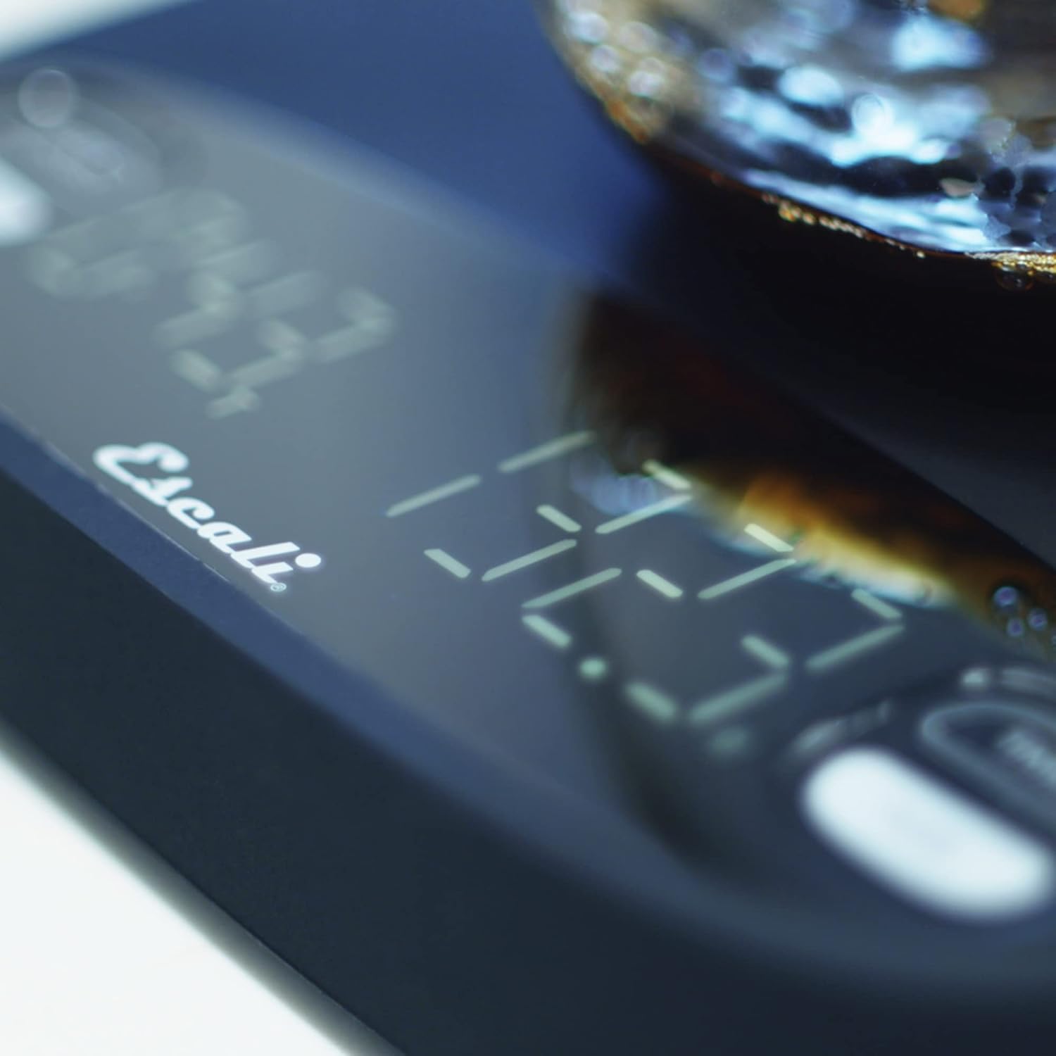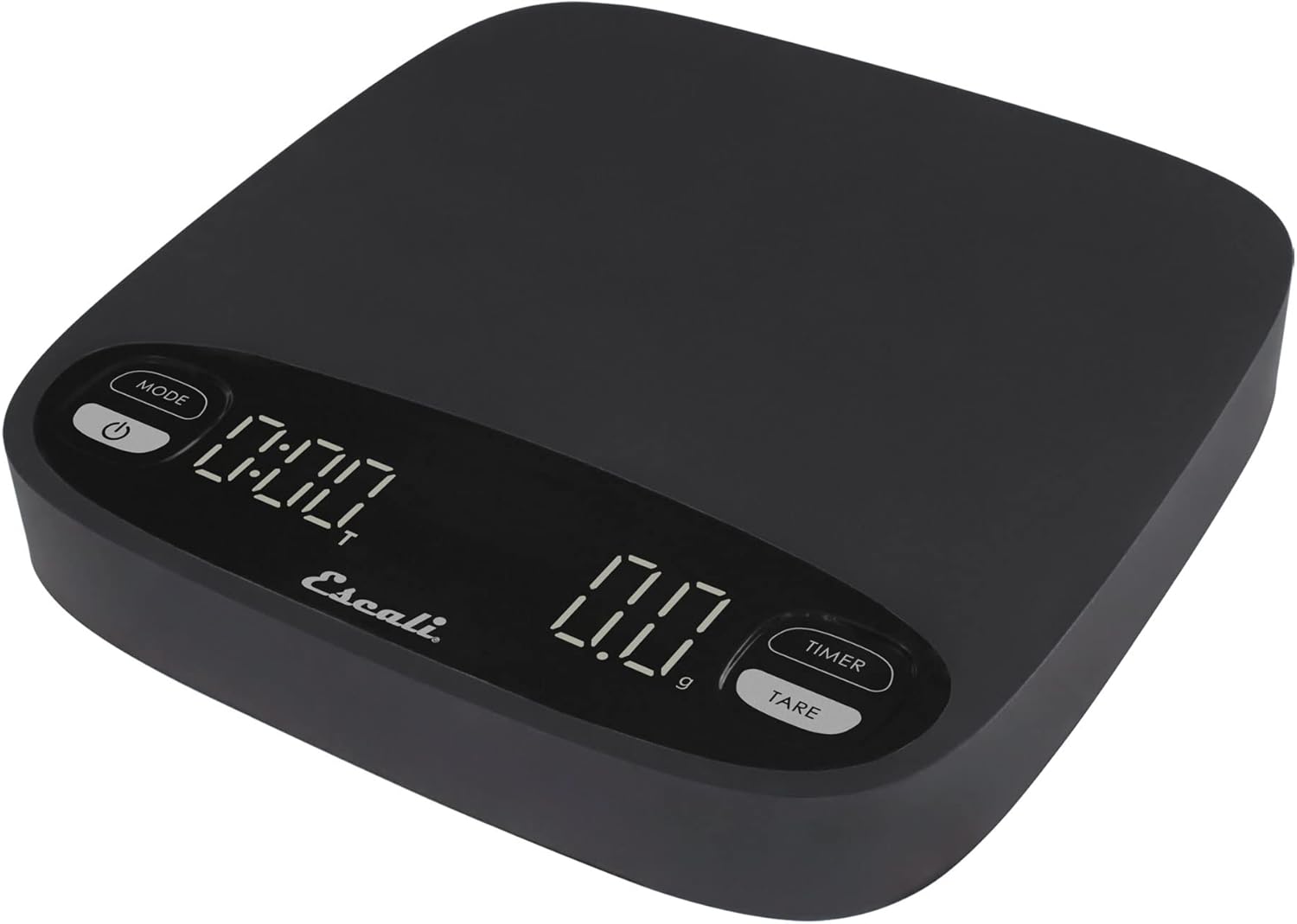 Escali Versi Coffee Scale with Timer, Weigh up to 6.6 lbs / 3,000 Grams, Rechargeable – Black, Standard