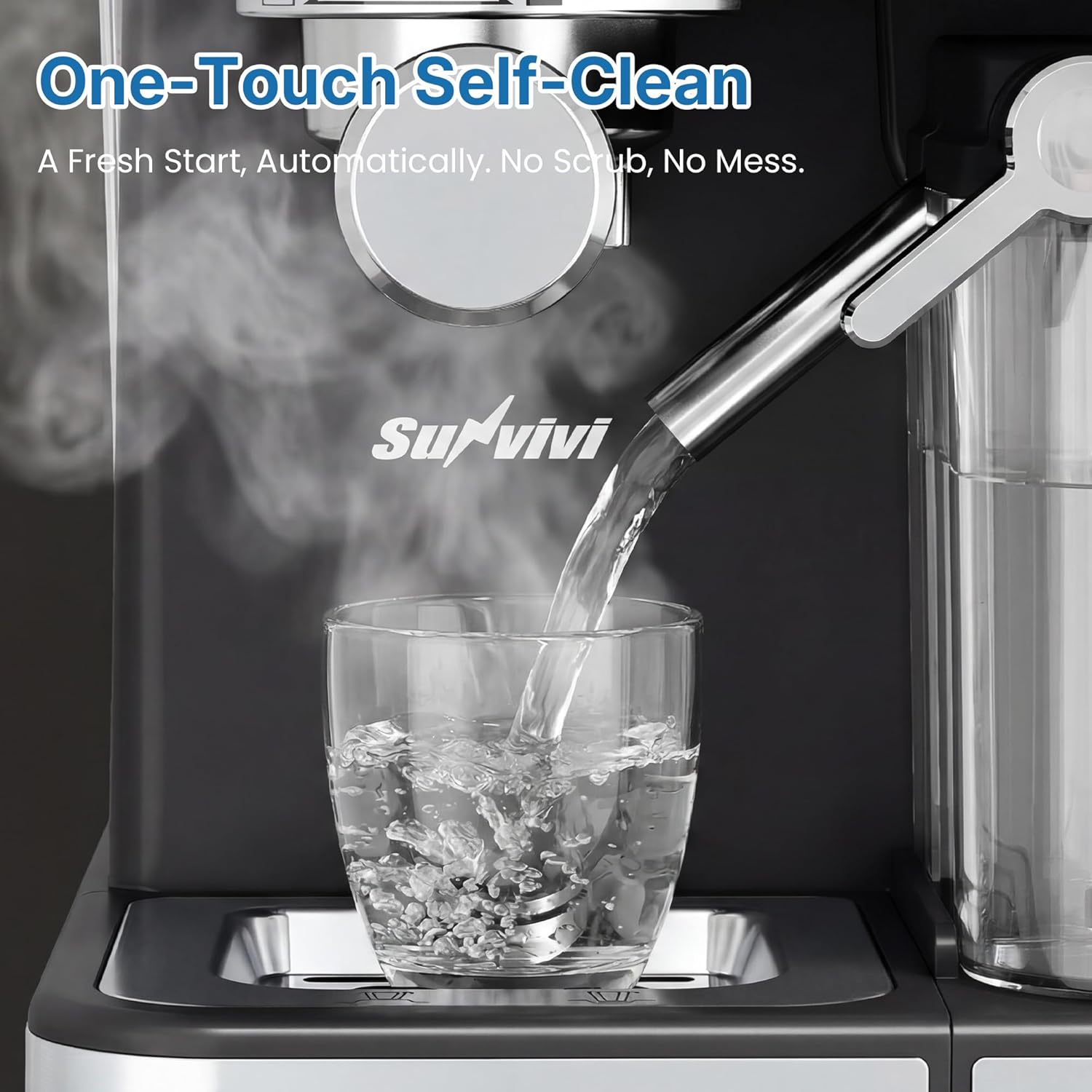 Multi-Style Coffee & One-Touch Self Cleaning: Easily prepare espresso, Americano, latte, cappuccino, and other milk-based drinks with this all-in-one espresso machine coffee maker. The built-in one-touch self-cleaning system keeps the milk frother coffee machine fresh and hygienic, reducing daily maintenance for home office countertop use.