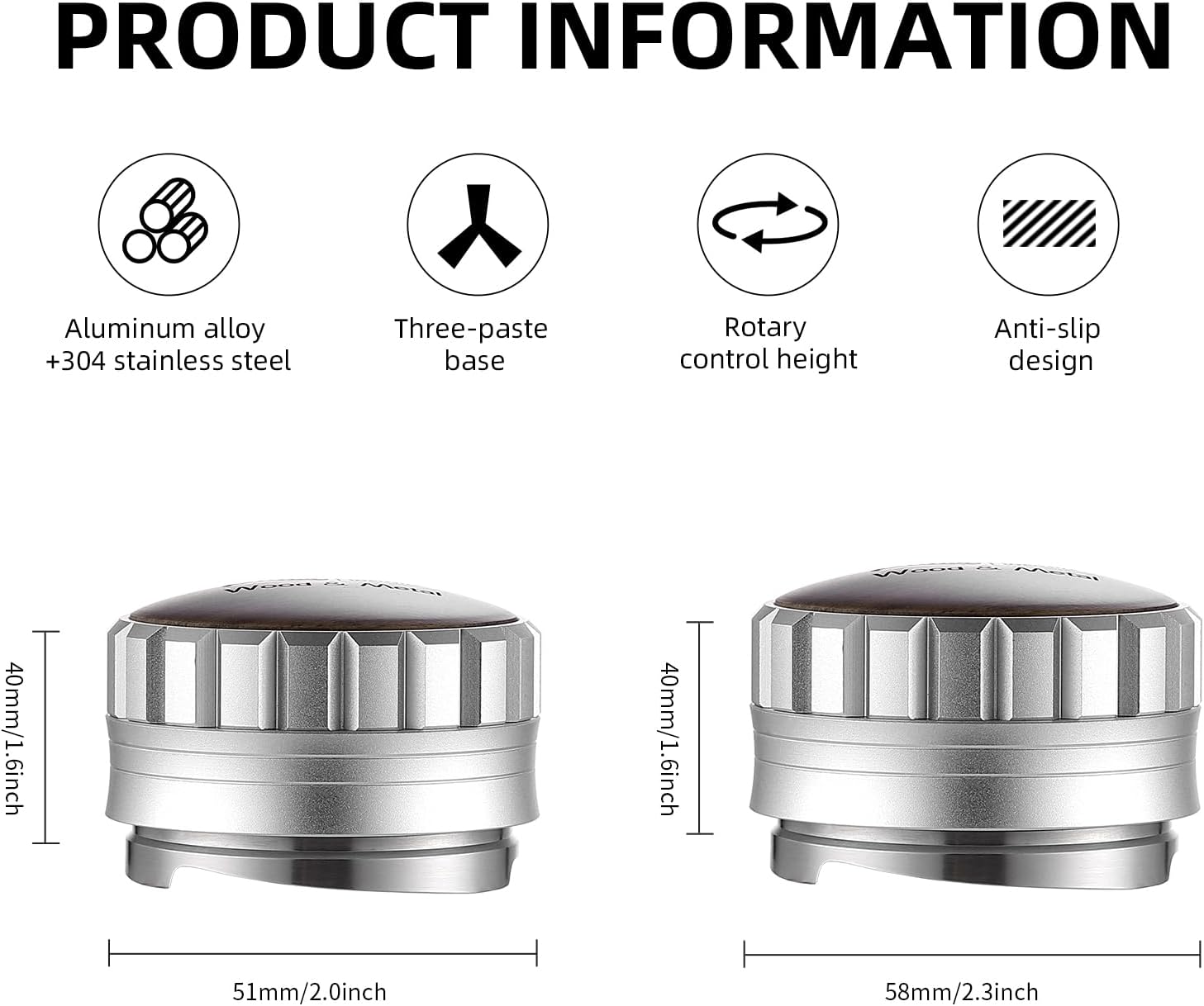 58mm Adjustable Distributor & Tamper-58mm base designed to be comaptible with Breville 58mm portafilter baskets, including the Barista Express, Pro, Touch, Bambino Plus, Infuser and Duo-Temp Pro.
