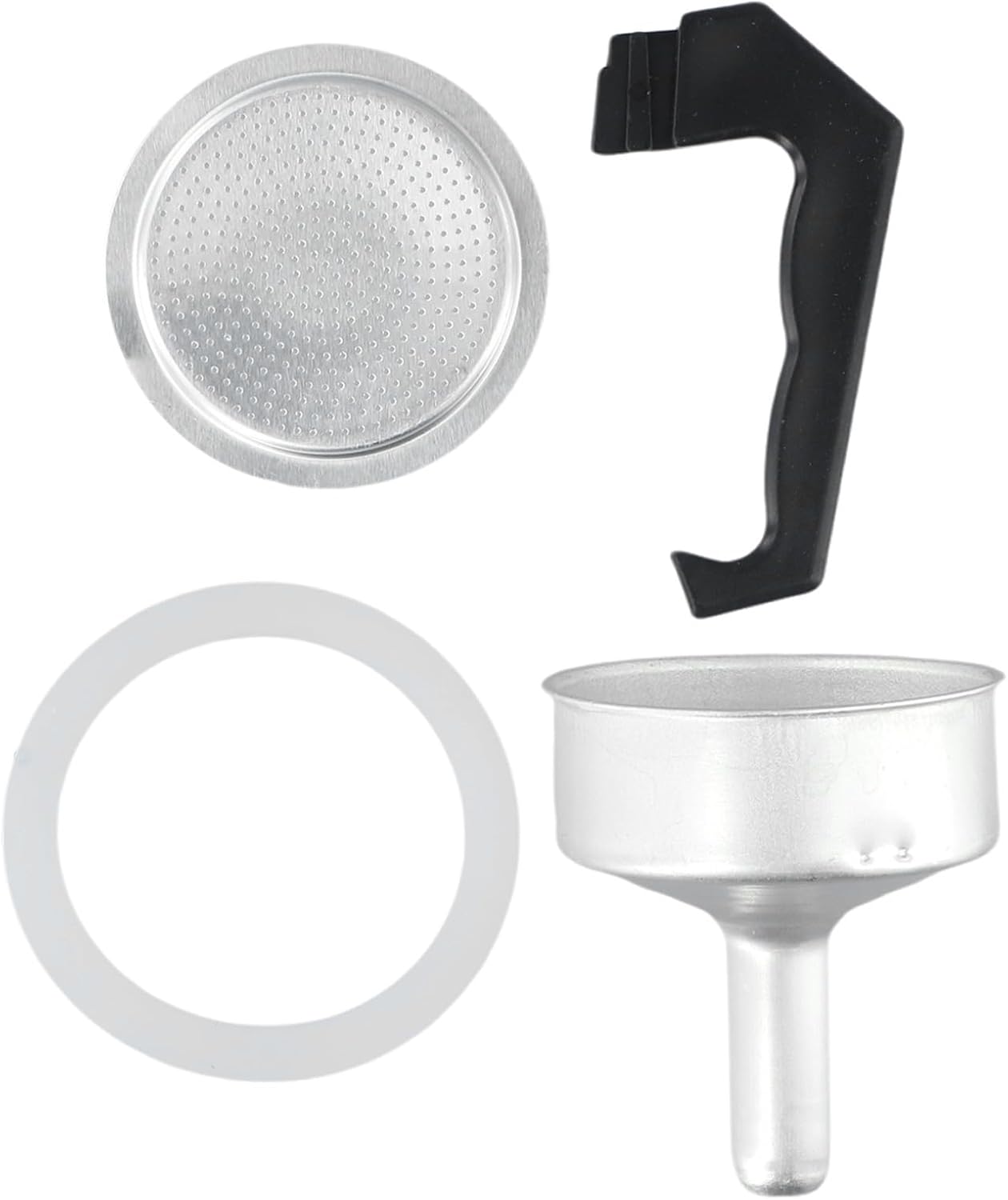 Espresso Coffee Moka Pot Replacement Parts Set Include Handle Funnel Filter Gasket Seal (6 Cup)