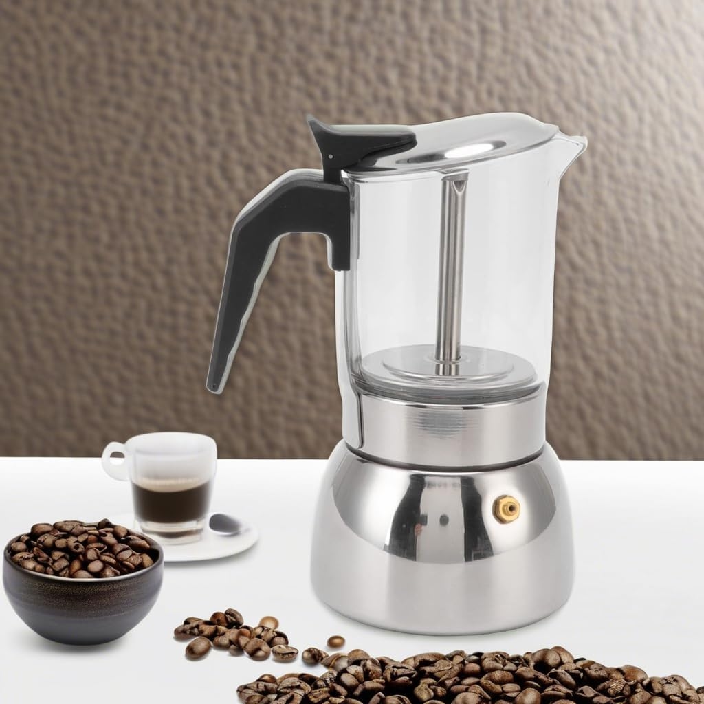 Espresso Maker, Stovetop Espresso And Coffee Maker Portable Glass Moka Pot Stainless Steel Italian Coffee Maker Classic Espresso Pot Coffee Maker for Home and Cafe(300ml)