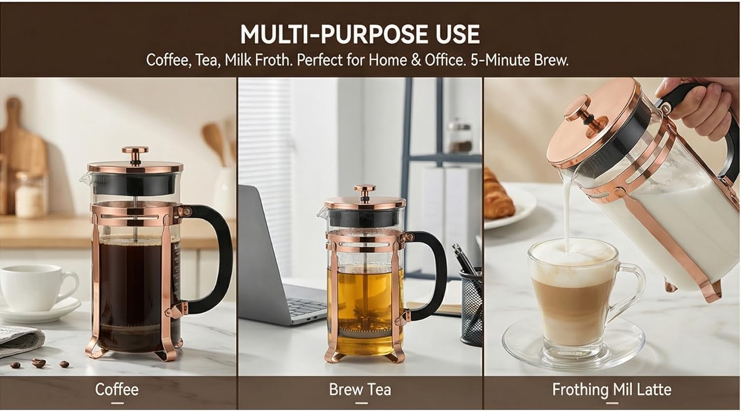3. 【Versatile Brewing for Many Occasions】 With a 21 oz (600 ml) capacity, it’s perfect for 1–2 people daily use. Easily brew hot coffee, cold brew, black tea, herbal tea, or hot chocolate—ideal for home, office, or travel.