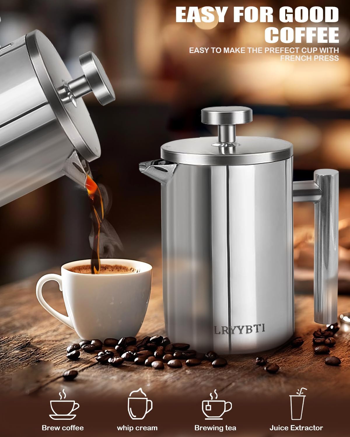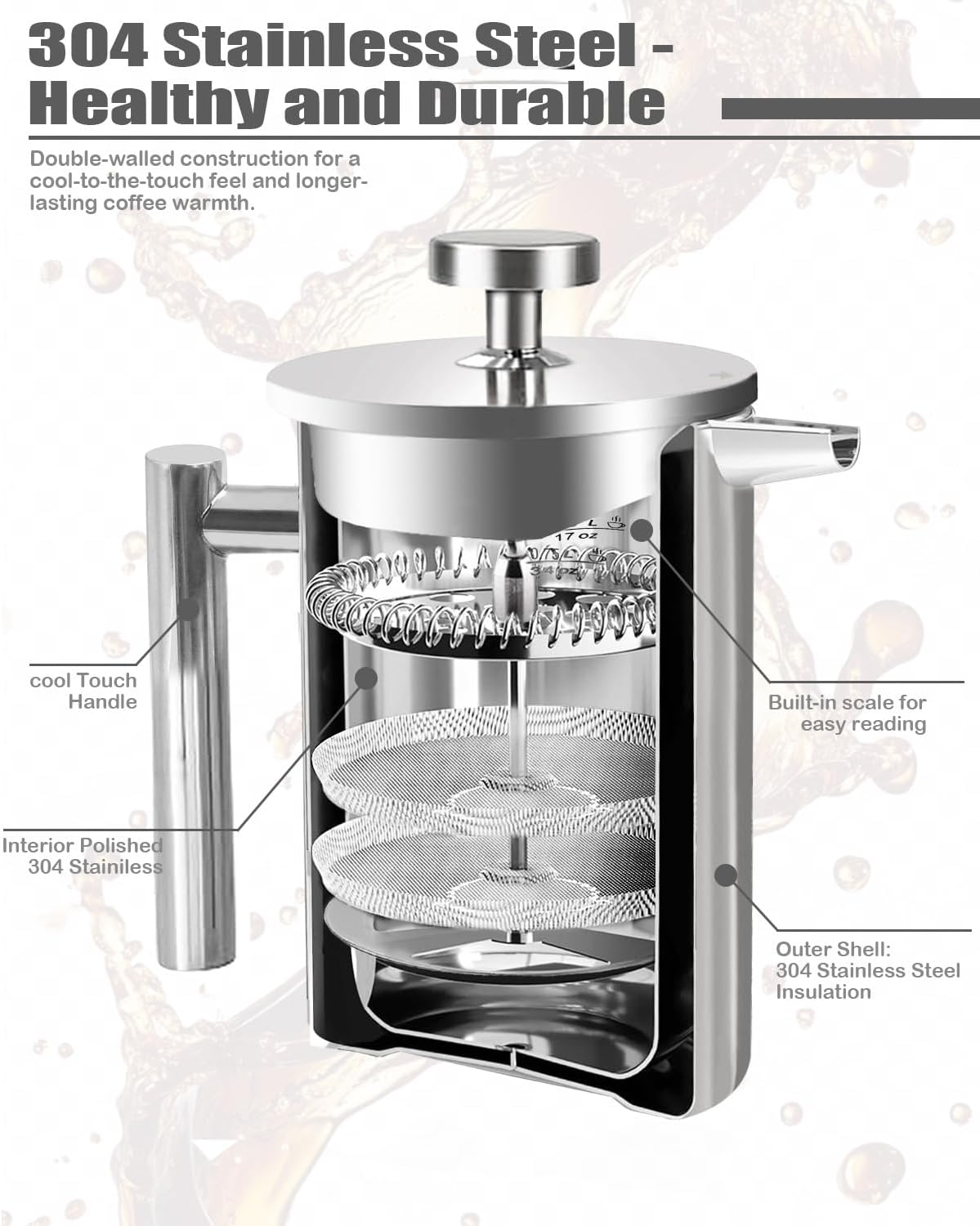 DURABLE CONSTRUCTION: French press Made 304 stainless steel frame for long-lasting performance and reliable brewing