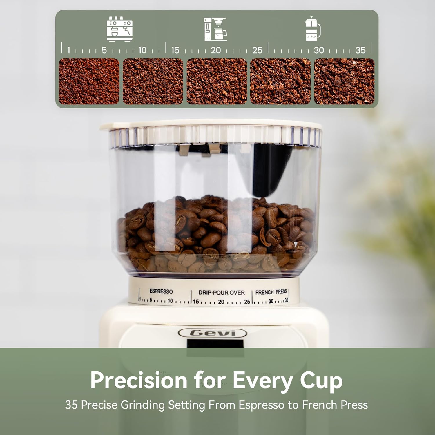 【PRECISION GRINDING SETTINGS】 Unlock 35 grind settings for ultimate coffee customization with Gevi espresso machines for home with burr coffee bean grinder set.