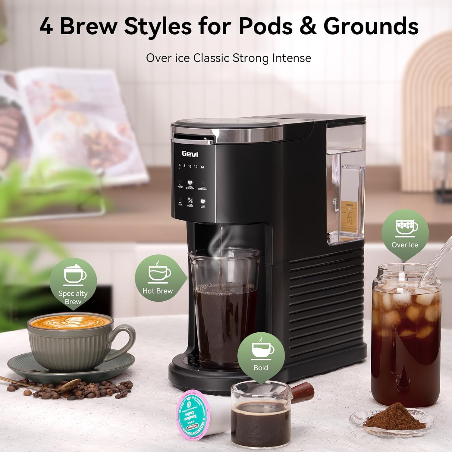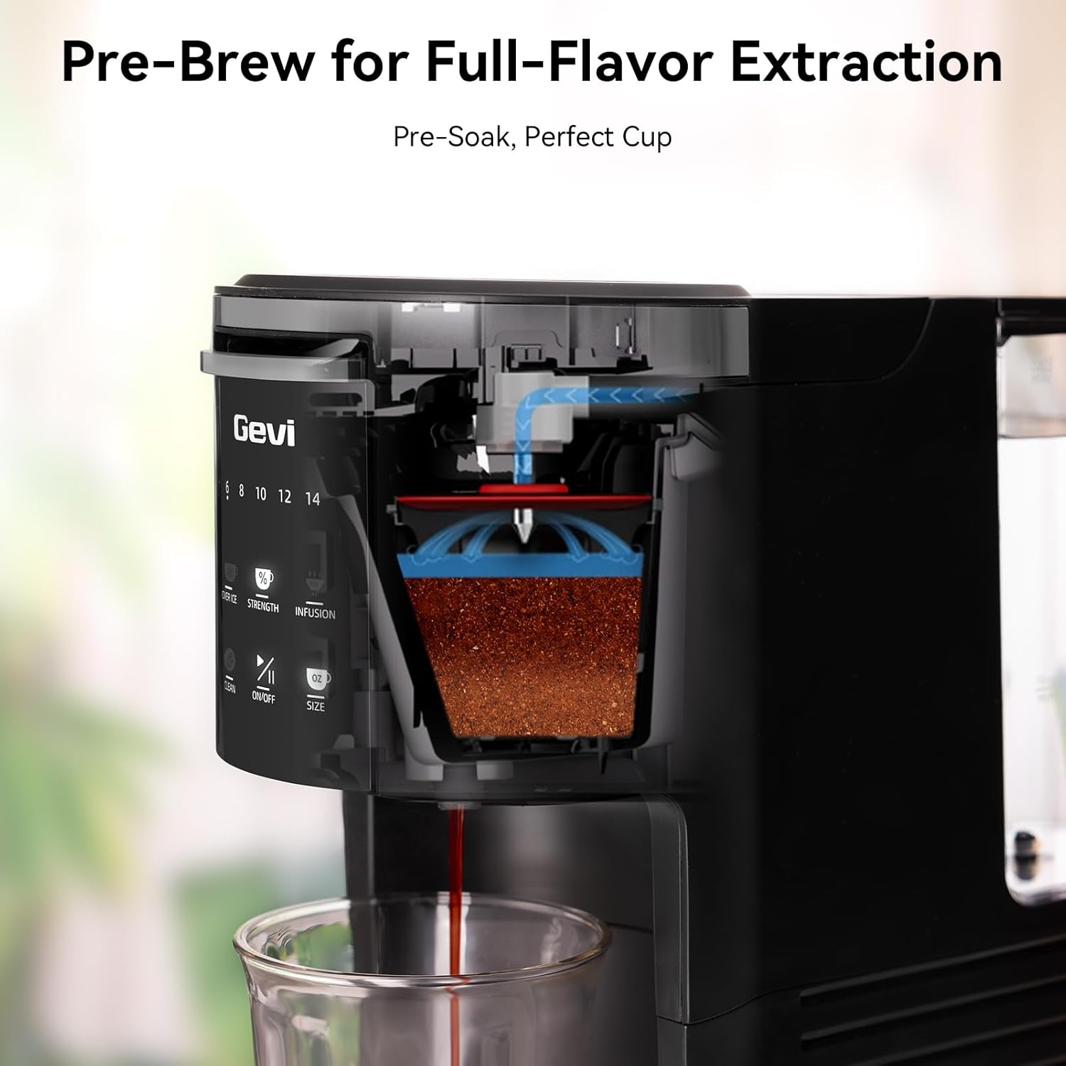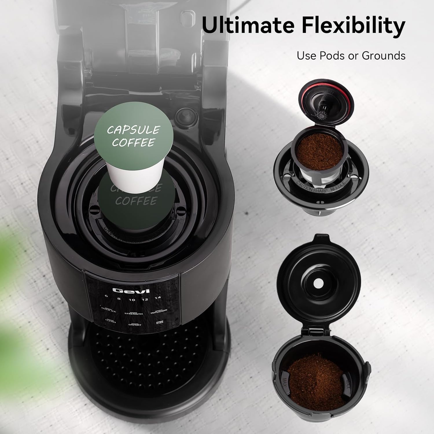 Gevi Single Serve Coffee Maker, Compatible with Pods & Ground Coffee, 40oz Removable Water Reservoir, 5 Brew Sizes (6-14oz), Compact for Kitchen Use, Black