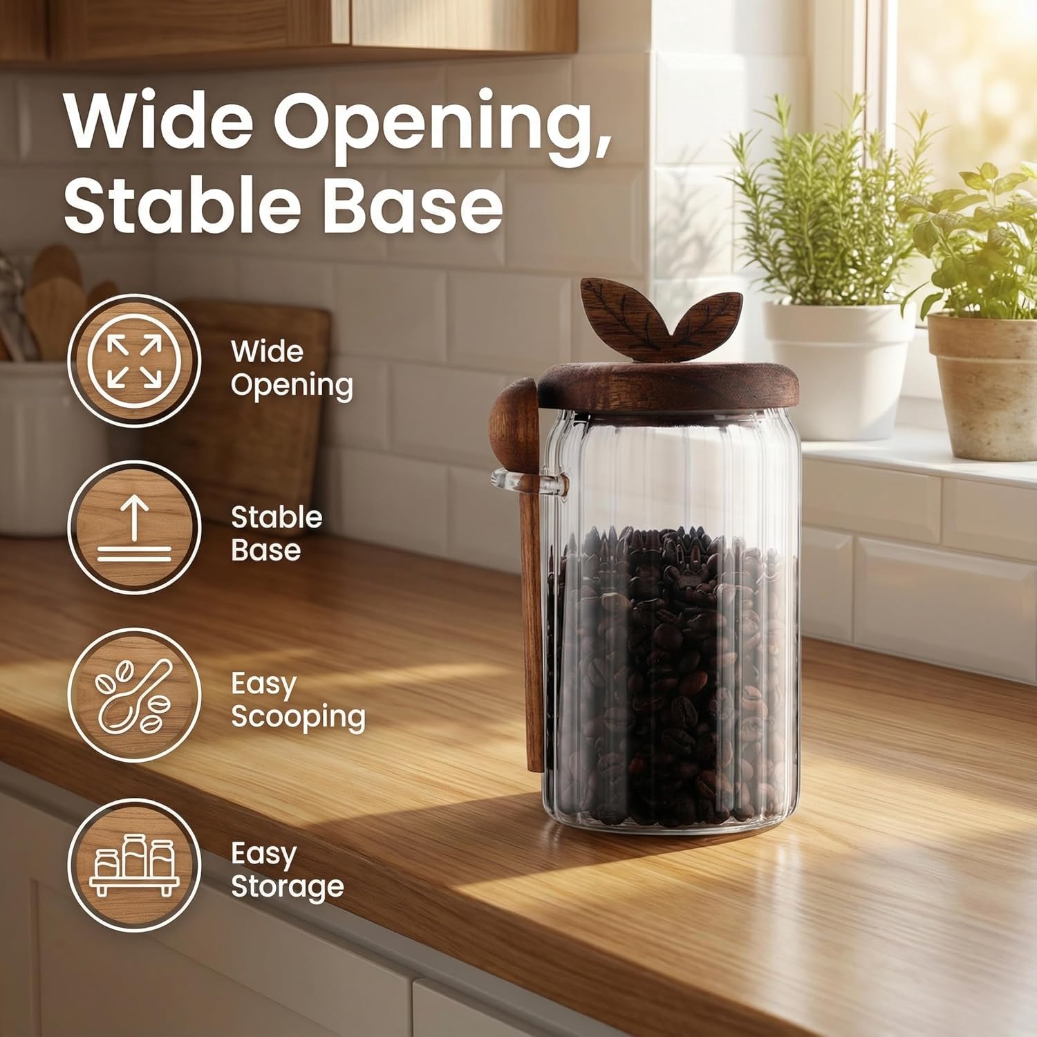 Natural Wooden Lid with Matching Spoon: Includes a smooth solid wood lid and a coordinating wooden spoon for easy scooping. Adds a warm, natural touch to coffee bars and kitchen countertops.
