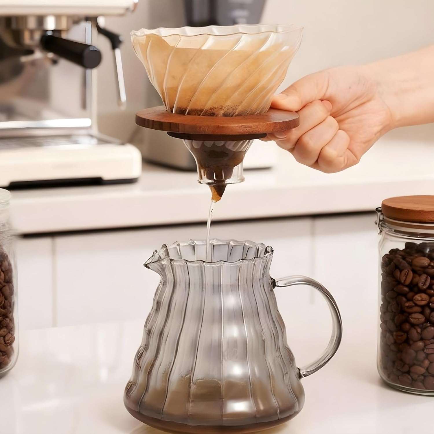 Easy to Clean – The glass dripper is dishwasher-safe for hassle-free cleaning. Detachable walnut base simplifies maintenance while keeping the dripper looking elegant.