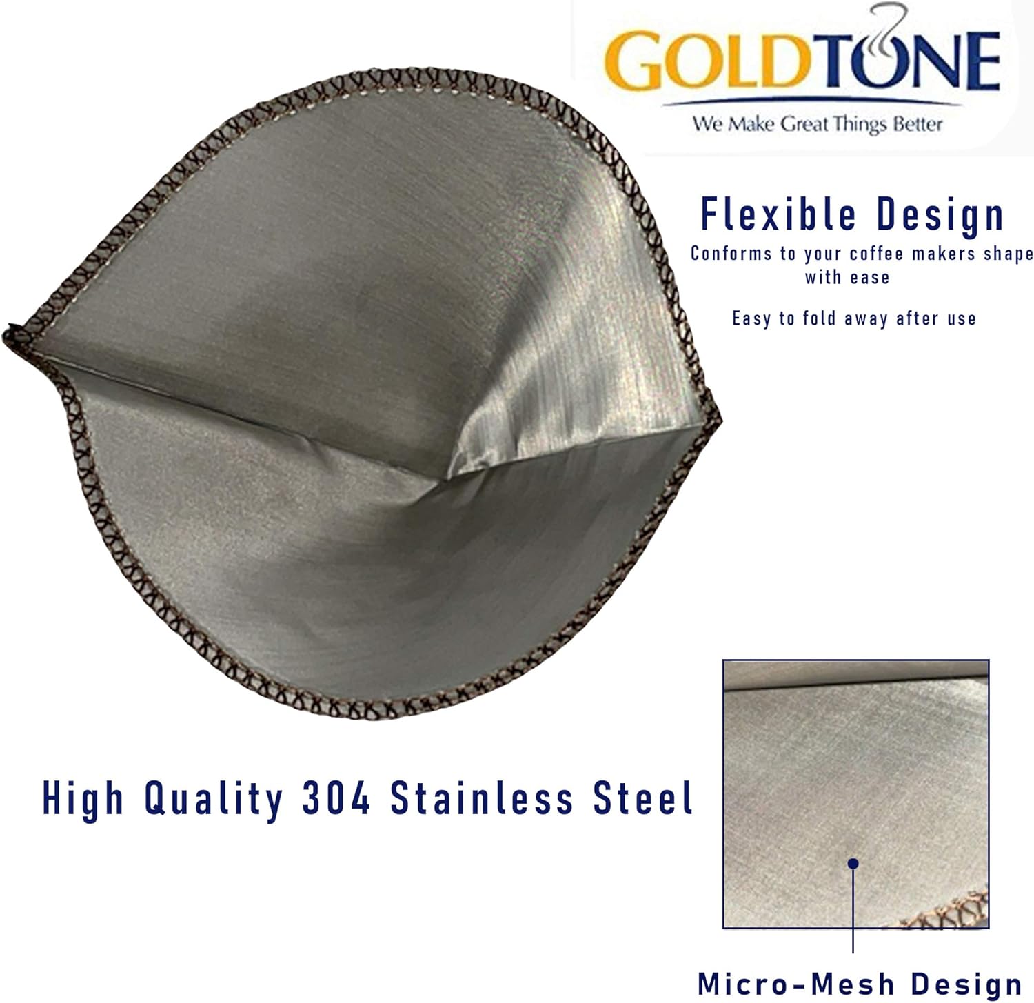 Brew your favorite coffee out hiking or on camping adventures with our GOLDTONE Collapsible Silicone Coffee Dripper combined with our GOLDTONE #2 Cone Style Frameless Micro-Mesh Filter. This collapsible coffee drip also works with your own #2 paper filter; brewing coffee into your favorite mug as you pour hot water over the grounds inside. Introducing GOLDTONE’s newest filter member, our flexible, frameless micro-mesh #2 filter gives you the smoothest gourmet style coffee on the go. It’s easy to clean and with its flexible design, can fold away after use! It takes a couple of minutes for the water to soak the grounds and permeate through the filter, making your gourmet cup of coffee in the process. We use modern, BPA Free, heat-resistant silicone that won’t create harmful byproducts or pass on odors or flavors to your coffee with hot liquids, withstanding temperatures up to 450 degrees Fahrenheit (232 degrees C). Plus, it’s dishwasher safe for deep cleaning once you return from your excursion.