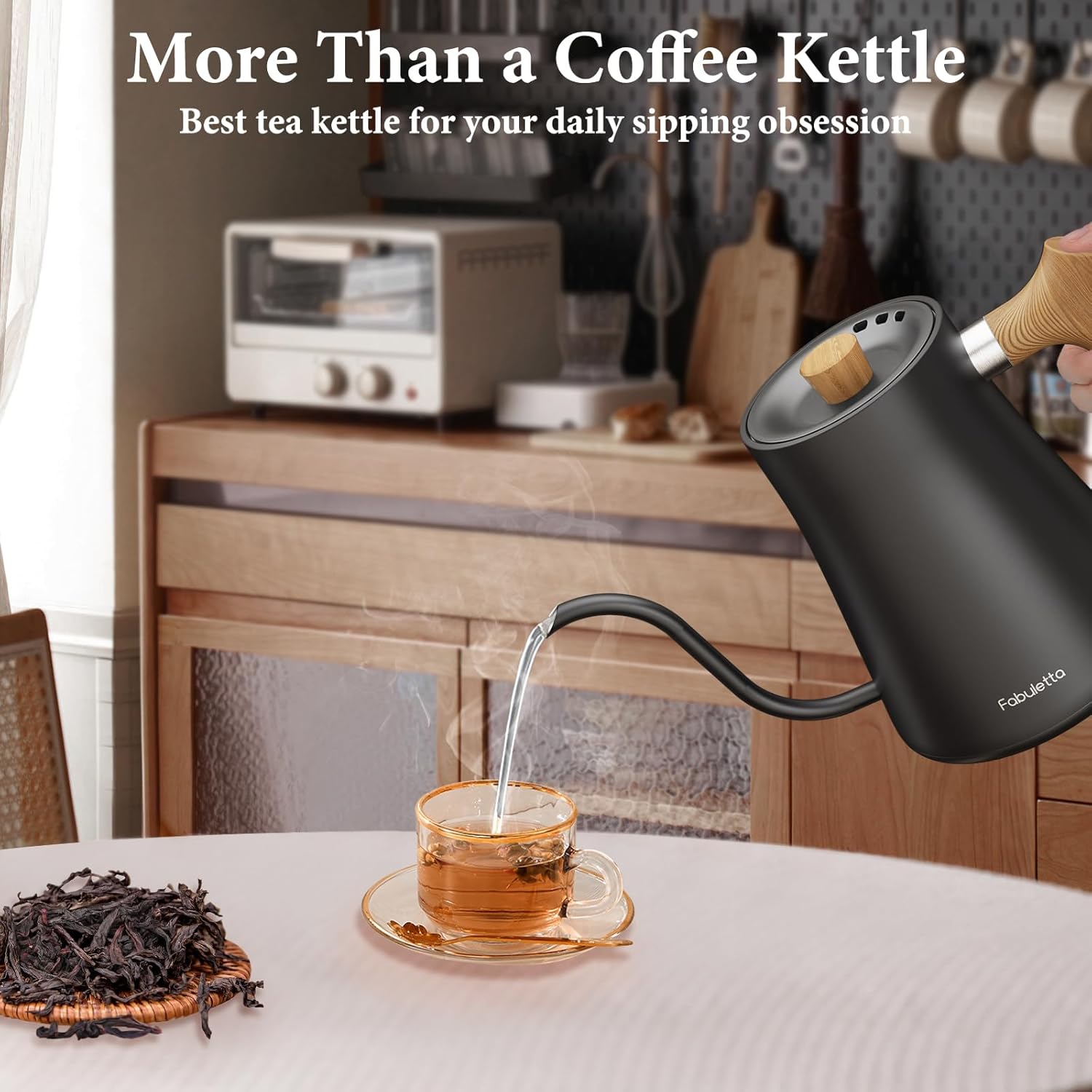 【3-minute Rapid Boiling】Fabuletta coffee kettle equipped with 1200W power. This allow you boil 1L( 30Oz) water in almost 3 minutes, making for delicious coffee and tea in no time at all. A desired temperature between 104°F-212°F to boil can be achieved.
