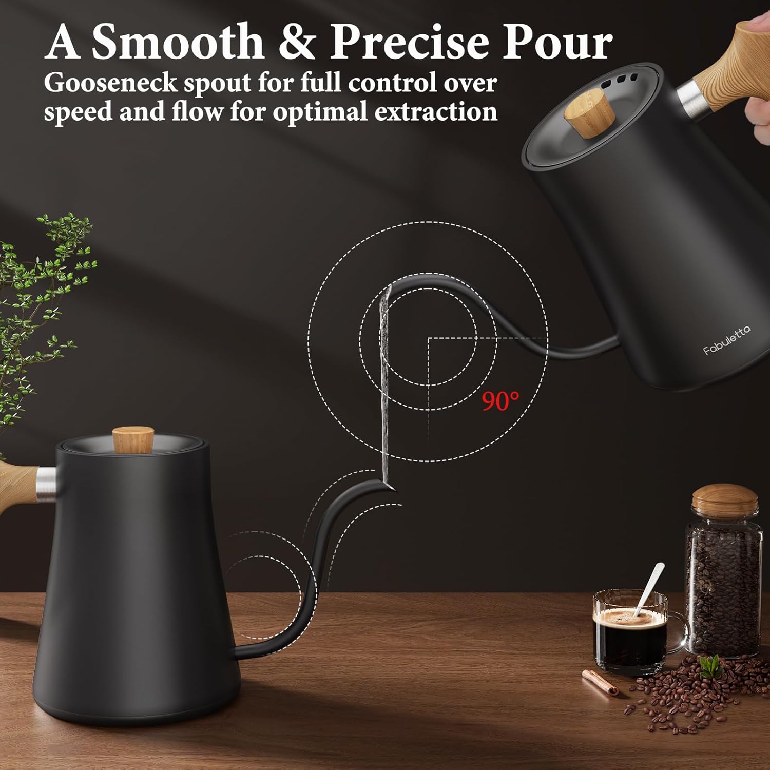 Gooseneck Electric Kettle Fabuletta 1200W Ultra Fast Boiling Water Kettle 100% Stainless Steel for Pour-over Coffee & Tea Leak-Proof Design French Press Boil-Dry Protection 1L (Wood)