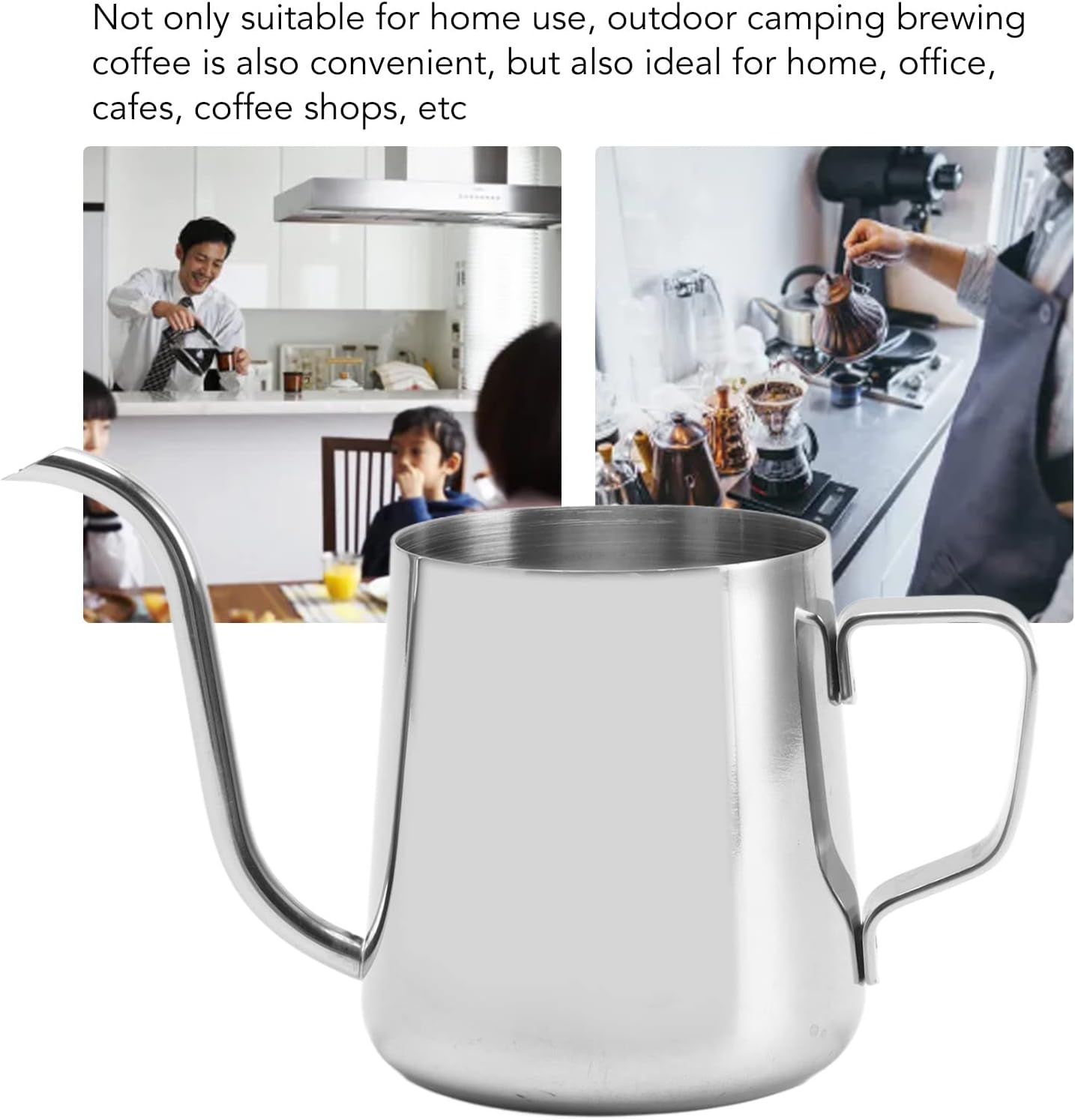 Gooseneck Pour Over Coffee Kettle, 304 Stainless Steel Hand Drip Tea Coffee Pot for Home and Outdoor Use, Uniform Coffee Extraction, Ergonomic Design, Multipurpose (250ML Silver)
