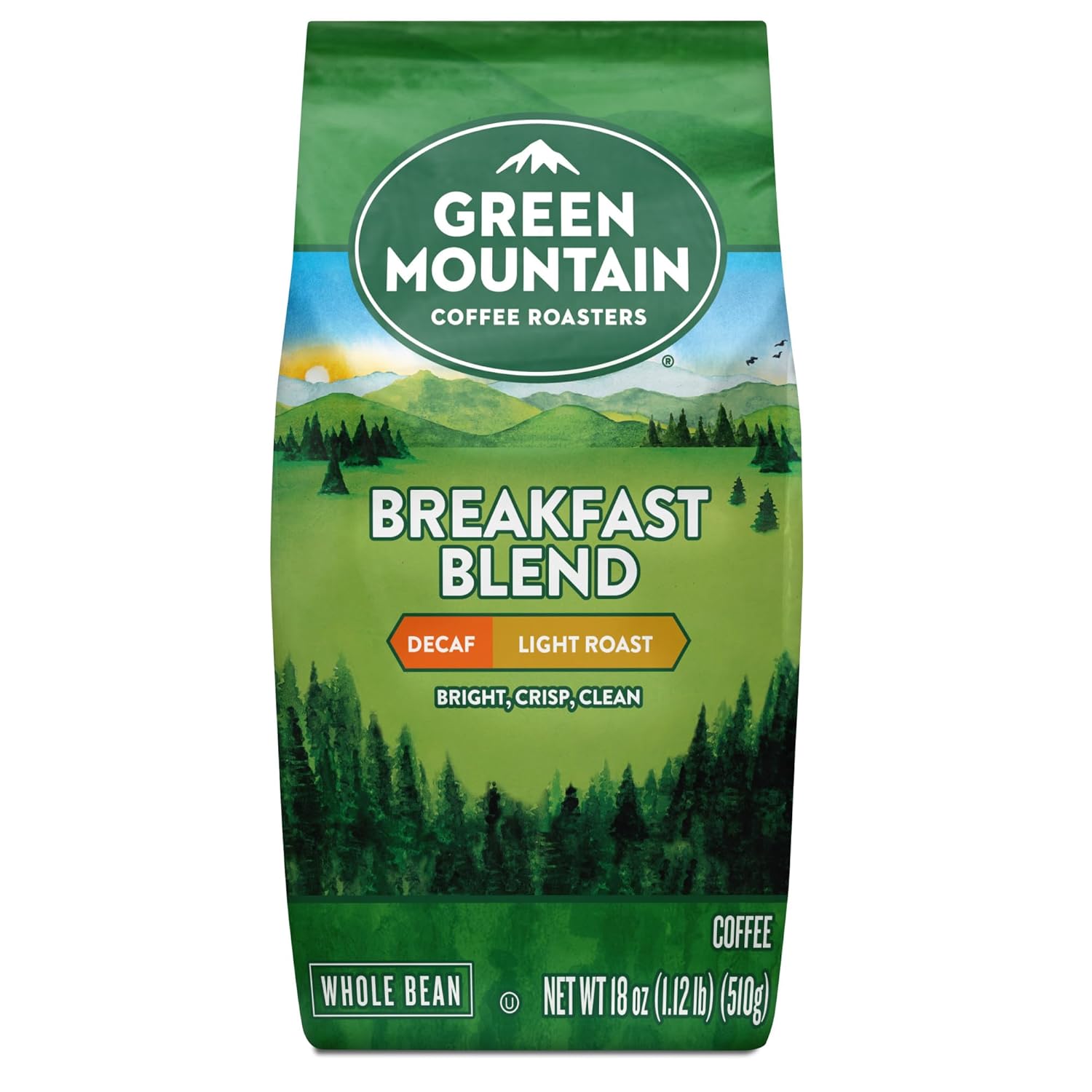 Green Mountain Coffee Roasters Breakfast Blend Decaf, Whole Bean Coffee, Bagged 18 oz