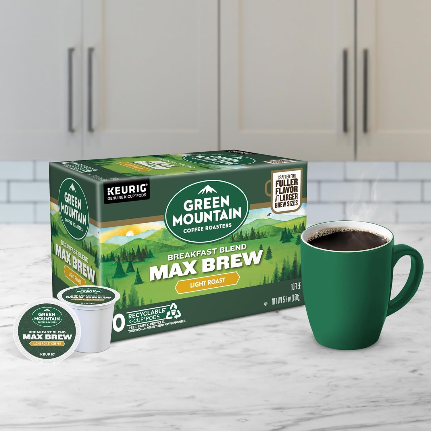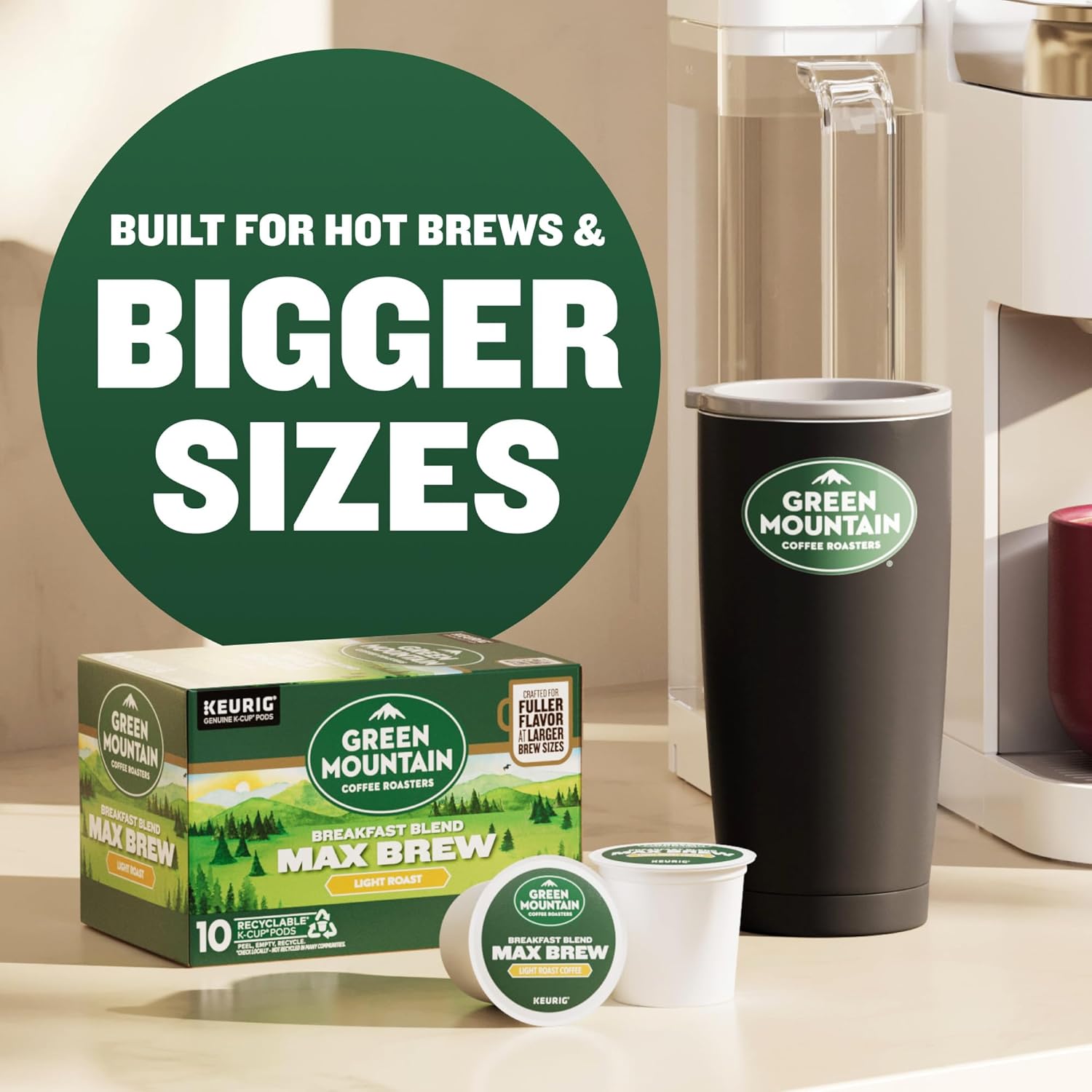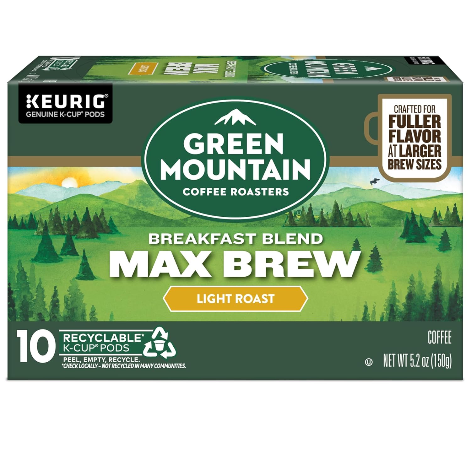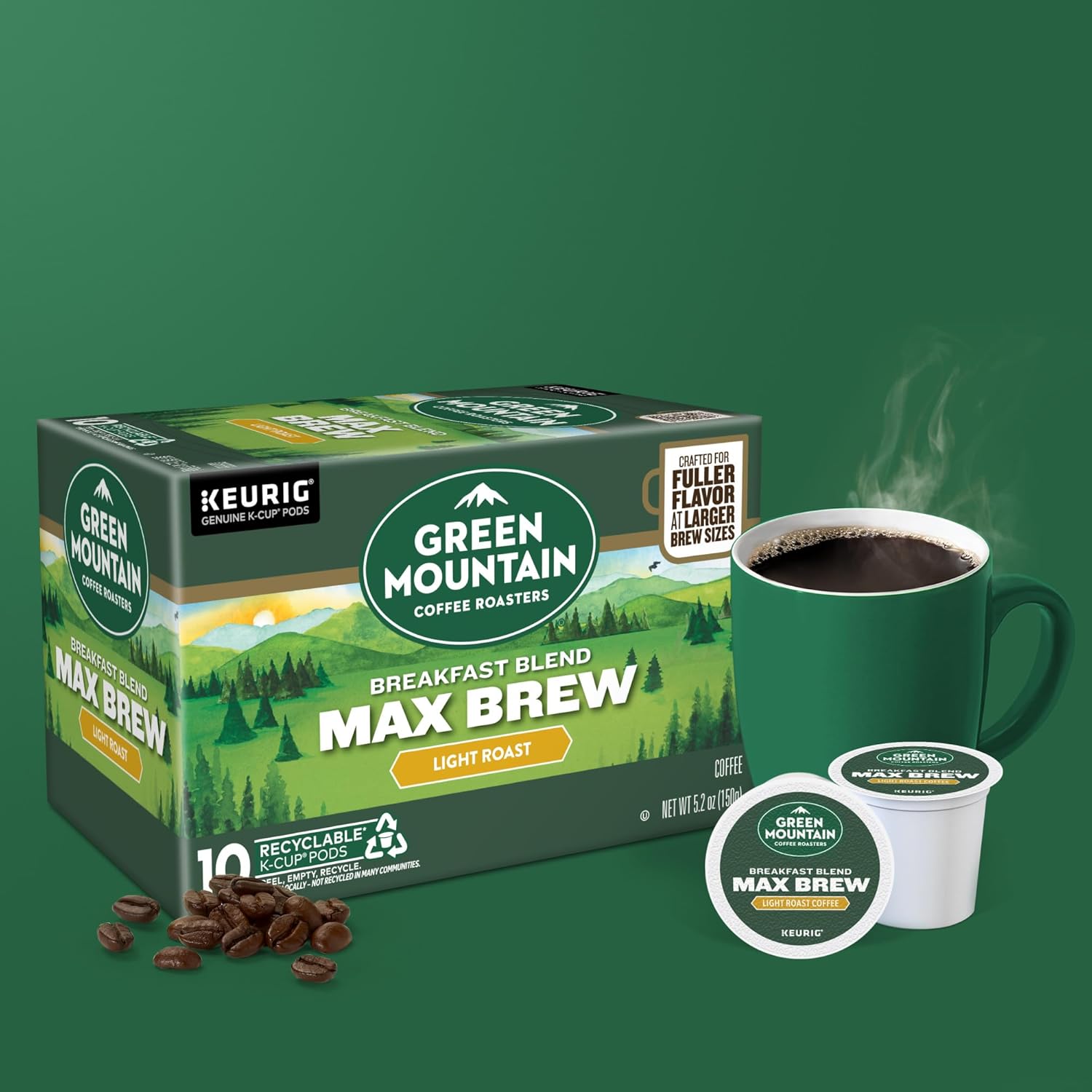 Green Mountain Coffee Roasters Breakfast Blend Max Brew, Single Serve Keurig K-Cup Pods, Light Roast Coffee, 60-Count Box (6 Packs of 10)