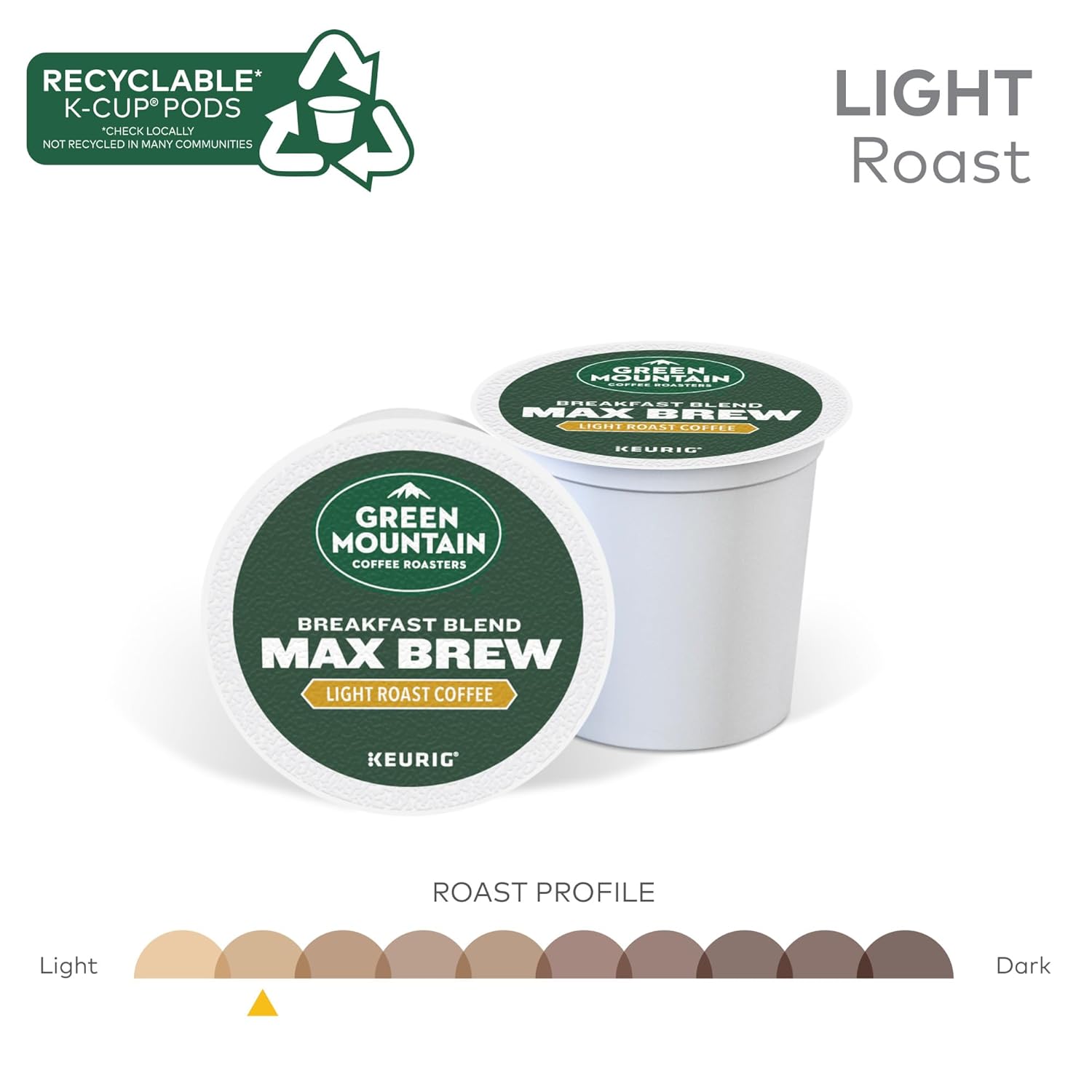 Green Mountain Coffee Roasters Breakfast Blend Max Brew, Single Serve Keurig K-Cup Pods, Light Roast Coffee, 60 Count