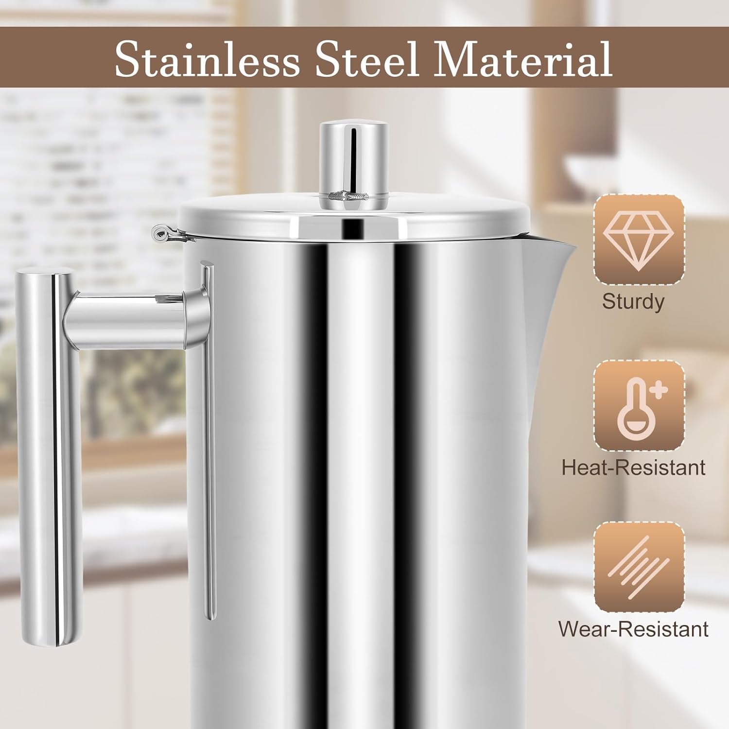 STAINLESS STEEL CONSTRUCTION: Crafted from premium stainless steel, this coffee maker is built to last. Its contemporary design and robust build add a touch of sophistication to any kitchen, elevating your daily coffee ritual.