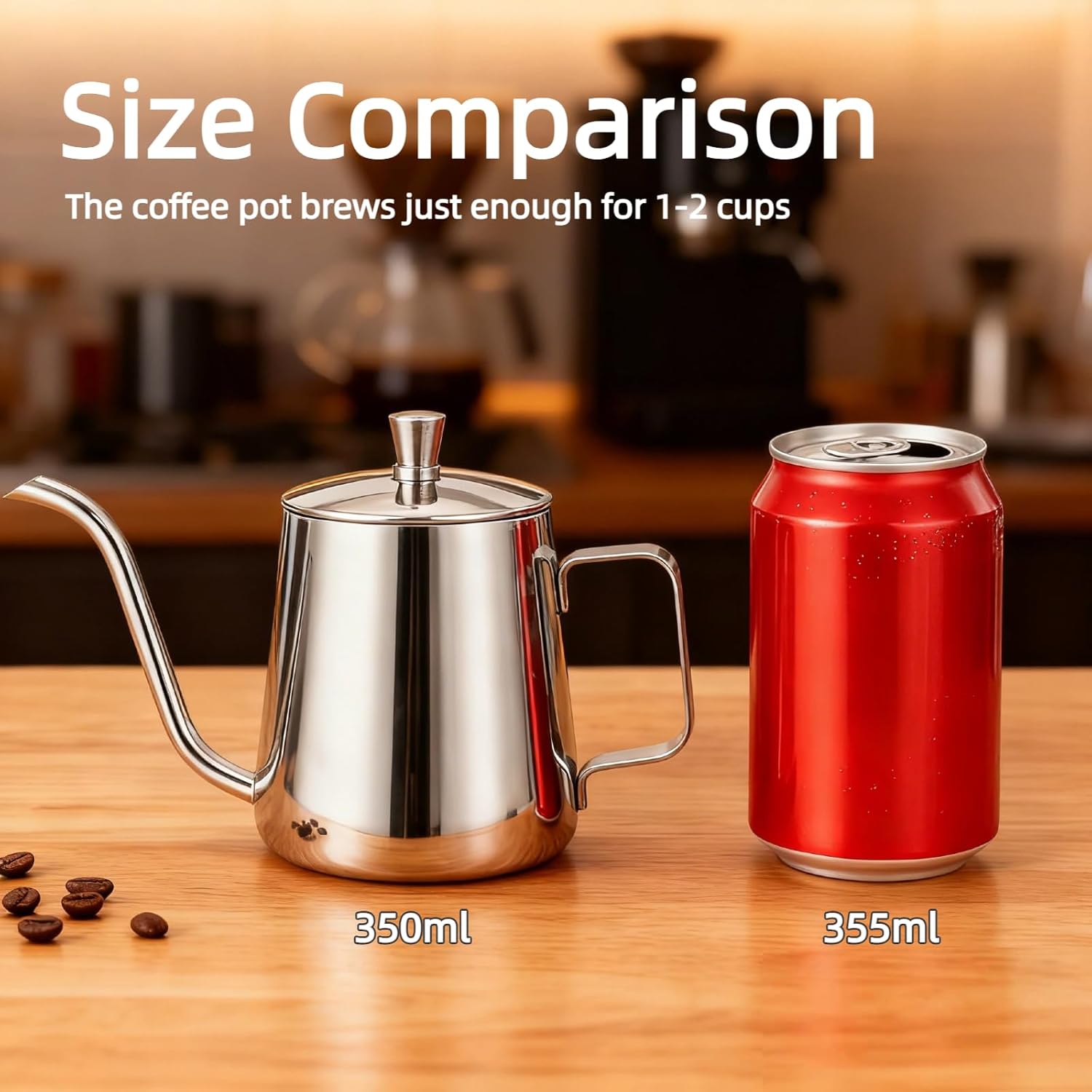GWHOLE 12oz Pour Over Gooseneck Coffee Kettle Long Narrow Drip Spout Coffee Tea Pot for Stove Top – Silver, 350ML/12 Oz
