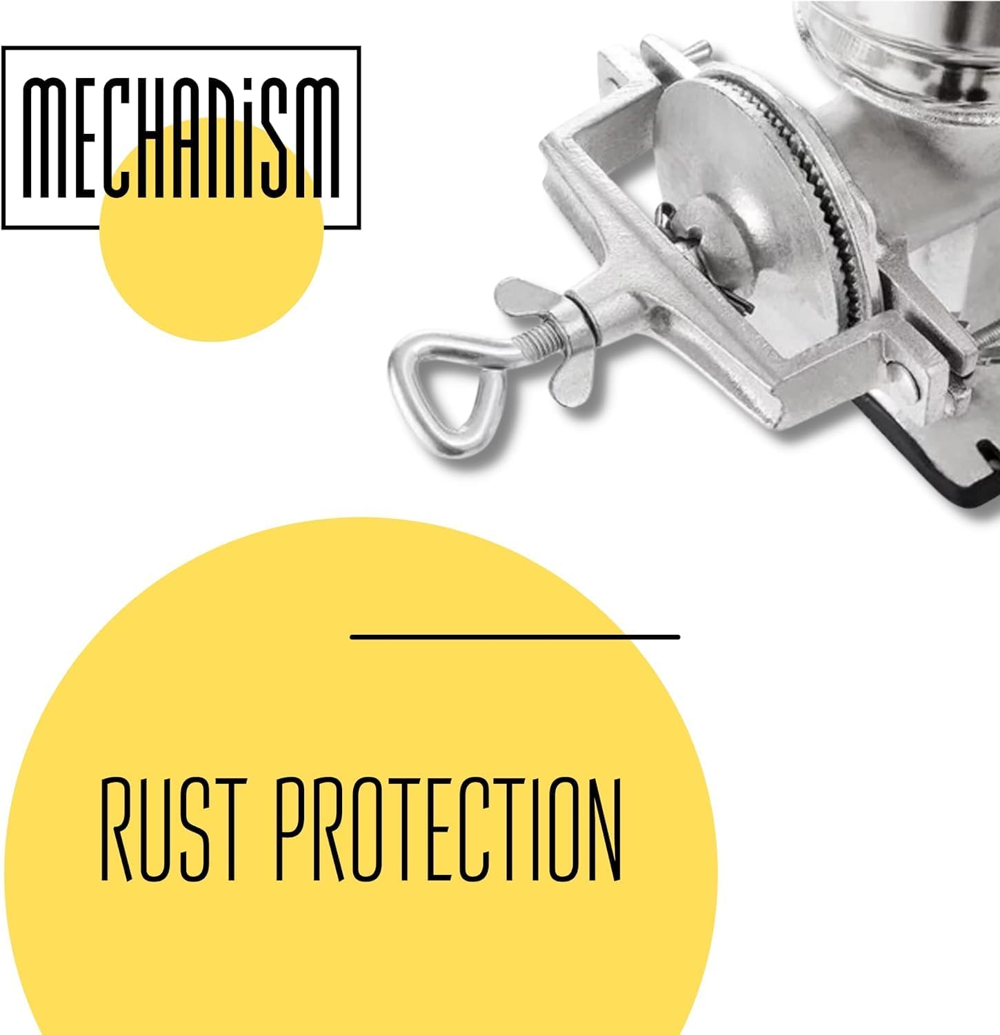 Hand grain mill made of heavy electroplating aluminum alloy with silver finish. Top-grade material of coffee grinder makes this hand flour mill durable to use