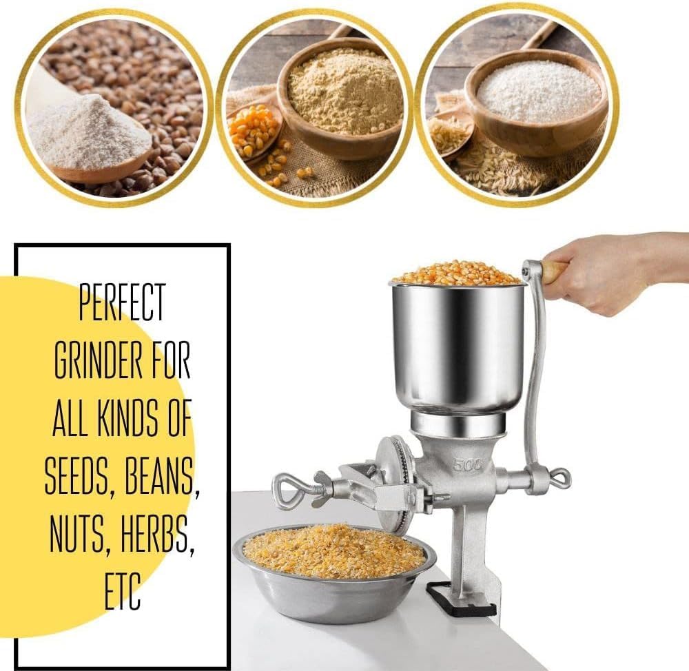 Wide use. The hand crank corn grinder is ideal for all kinds of grains, the hand corn grinder allows you to grind corn, coffee, herbs, oats, spices
