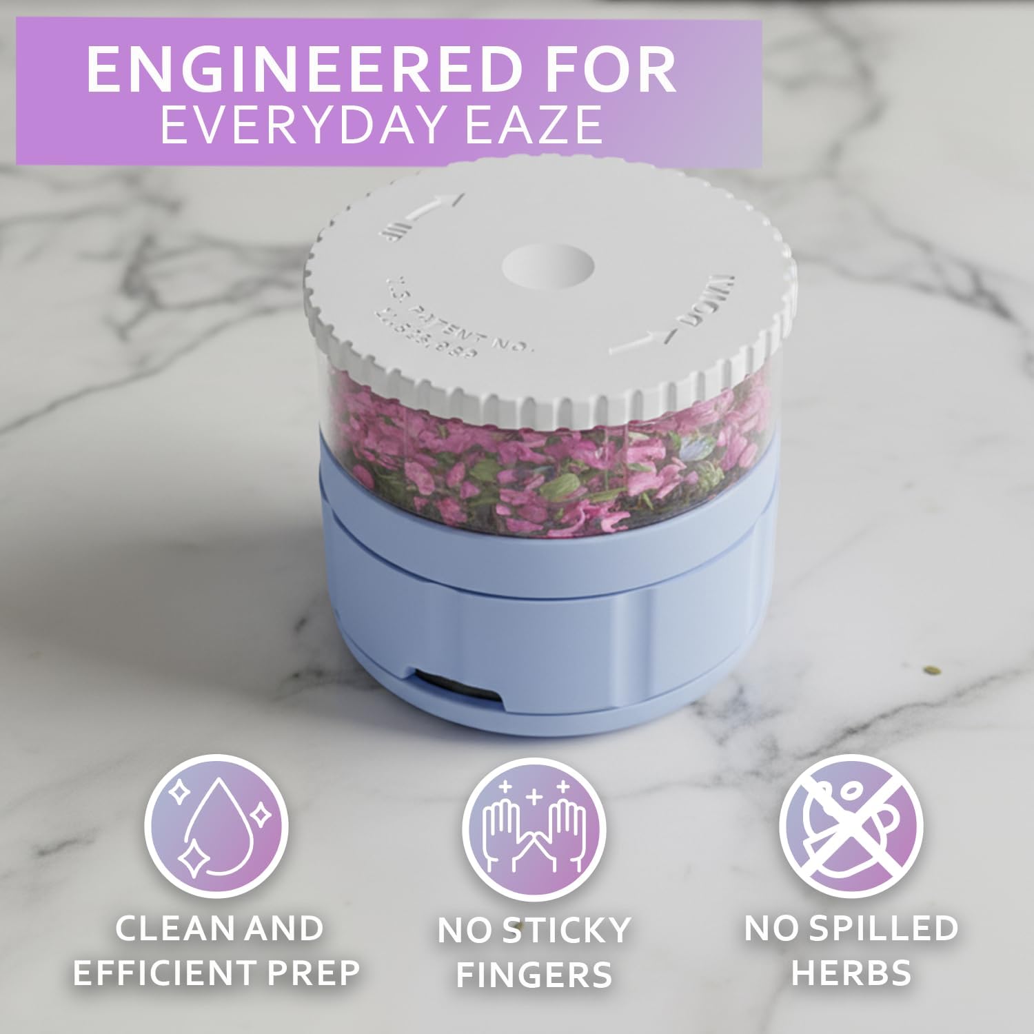🫙 Built-In Storage Container – Holds up to 3 grams of material inside the clear chamber so you can load once and grind fresh anywhere, anytime.