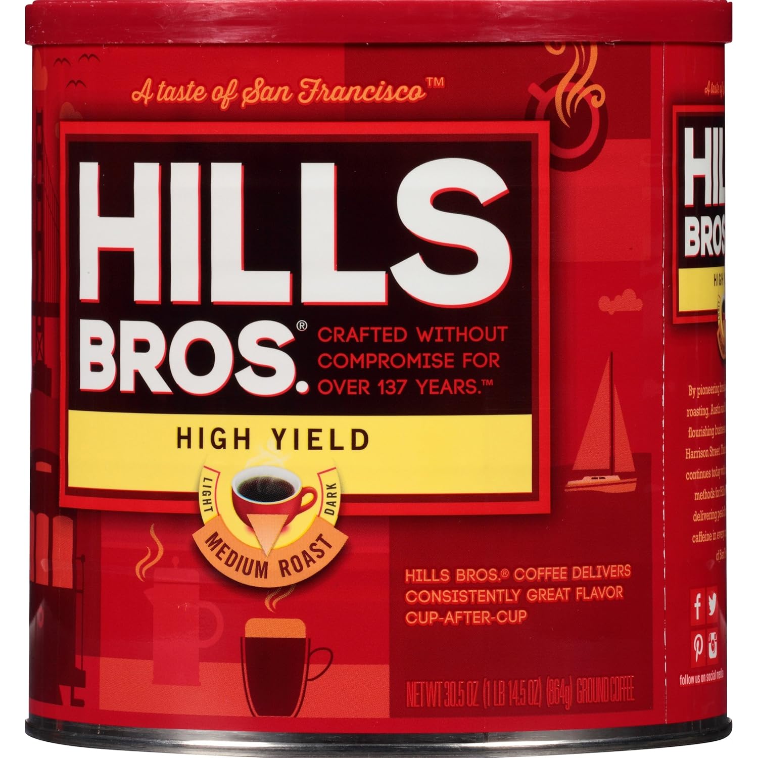 Hills Bros. High Yield Ground Coffee – Premium Arabica Coffee Beans – Medium Roast, Rich Flavor Cup After Cup – Recyclable Steel Can for Freshness – Certified Kosher – 30.5 OZ Can