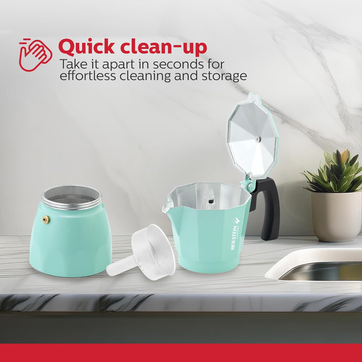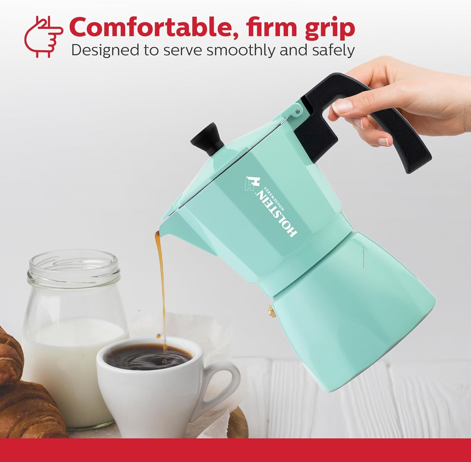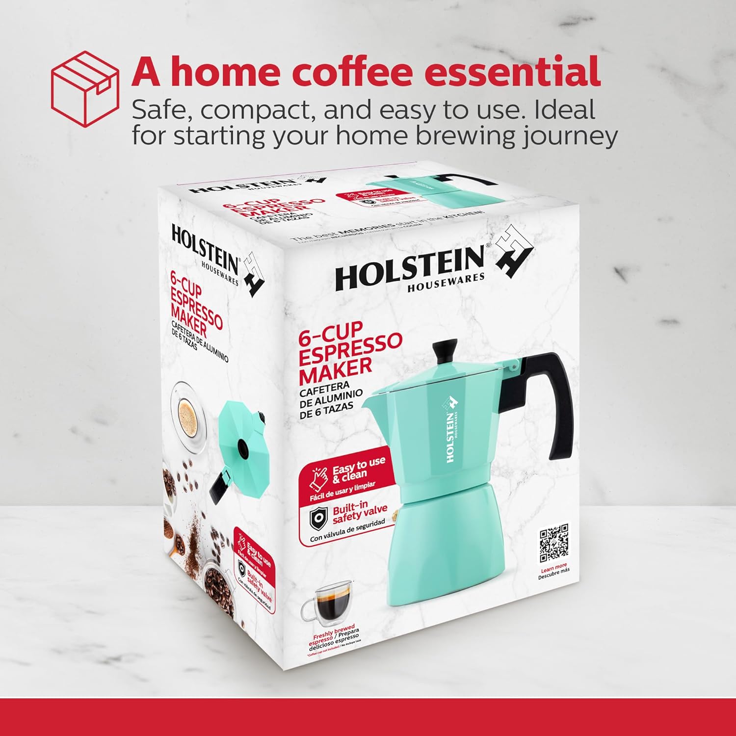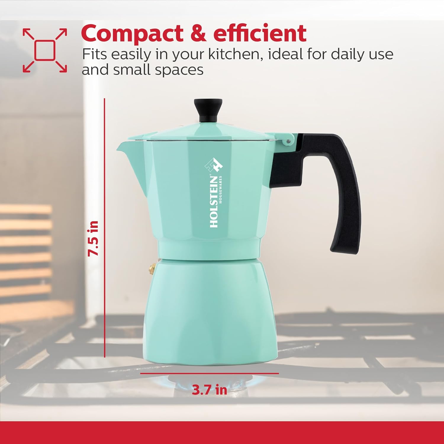 Holstein Housewares – 6 Cup Aluminum Stovetop Espresso Maker and Moka Pot – Great Tasting Traditional Espresso Coffee, Italian and Cuban Café Brewing in Minutes, Mint