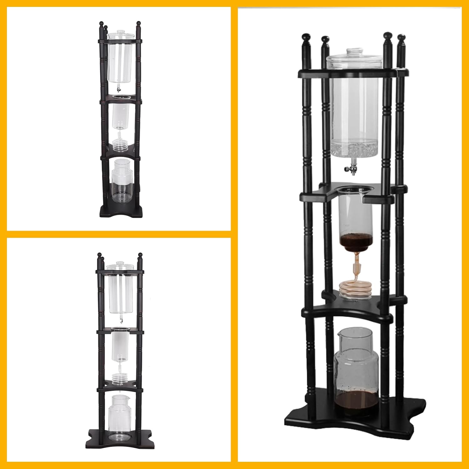 🧊☕【Durable & Easy Maintenance】 Built with heat-resistant borosilicate glass and sturdy solid wood, this coffee brewer is made for lasting daily use. The smooth surfaces and simple structure allow for quick, thorough cleaning to maintain coffee purity, helping ensure your brewer stays looking and performing like new over time.