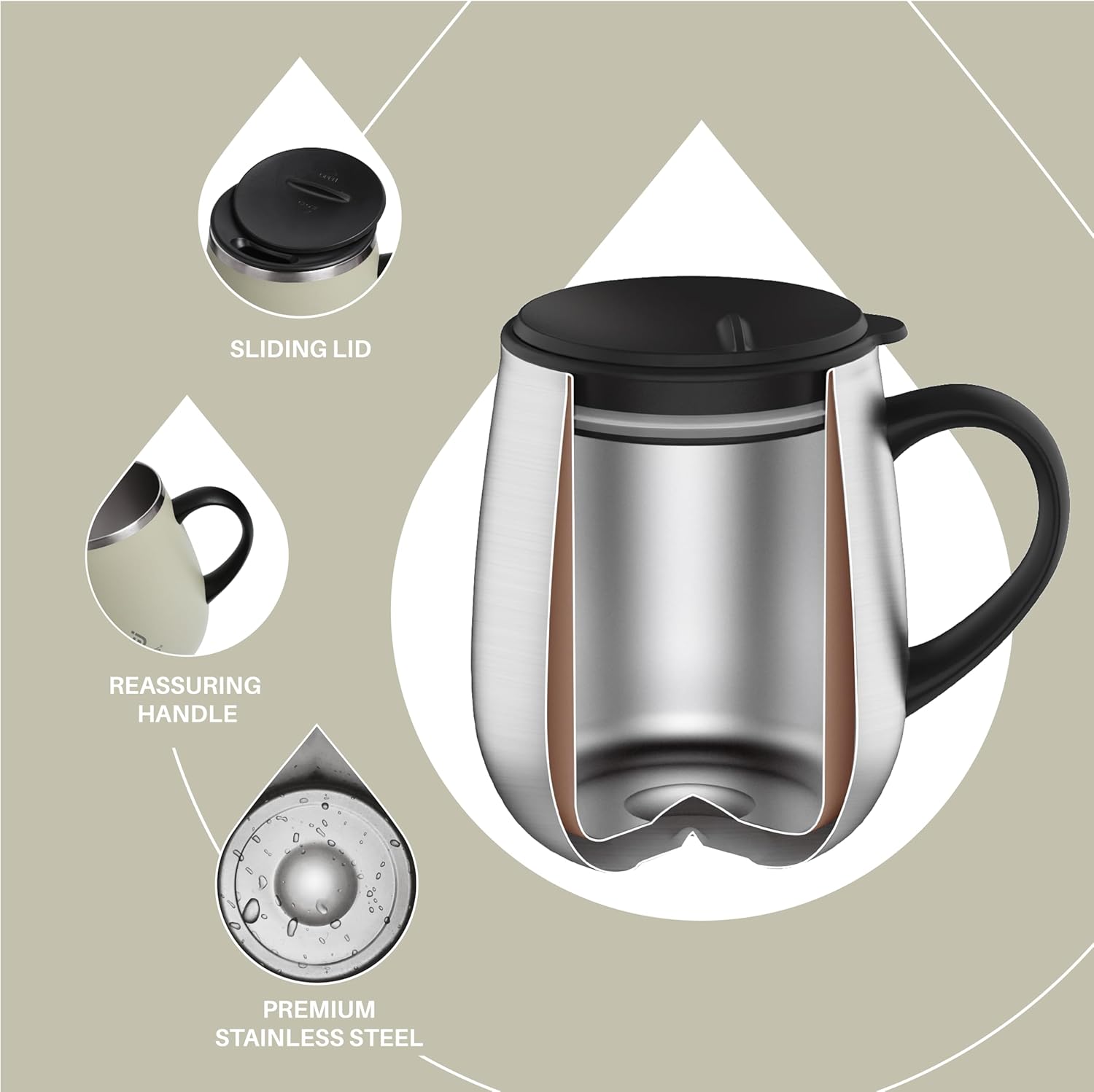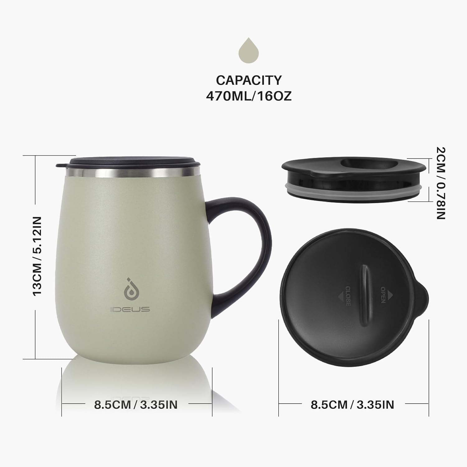 Ideus 16 oz (470 ml) Insulated Coffee Mug with Handle and Lid, Double Wall Stainless Steel Vacuum Thermal Coffee Mug, Travel Coffee Cup Thermal Cup for Home and Office (Celadon)