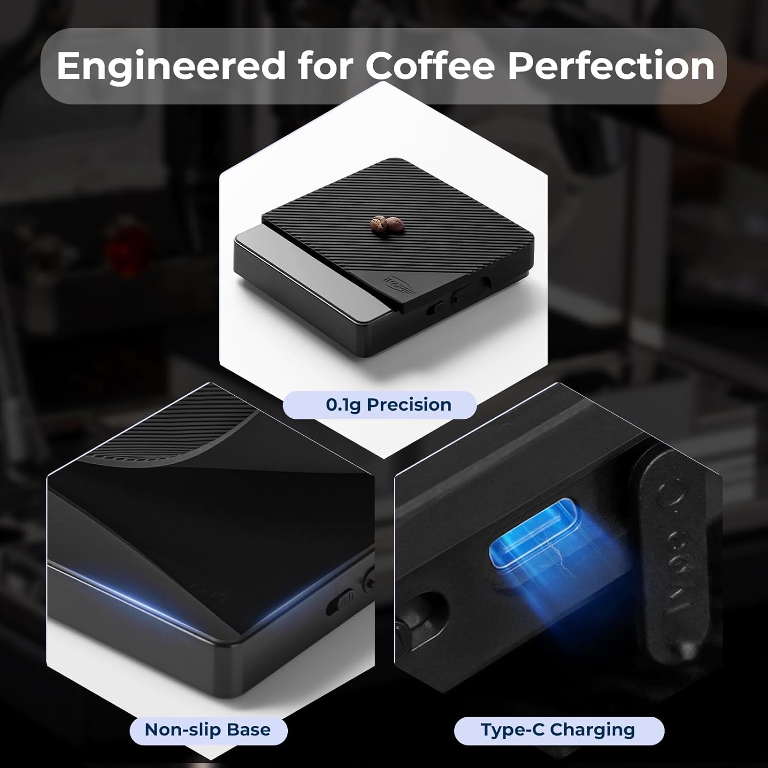 Small changes in coffee dose or yield greatly affect taste. A 1-2 gram difference can make espresso taste sour, bitter, or weak. 0.1g precision allows for unparalleled consistency.