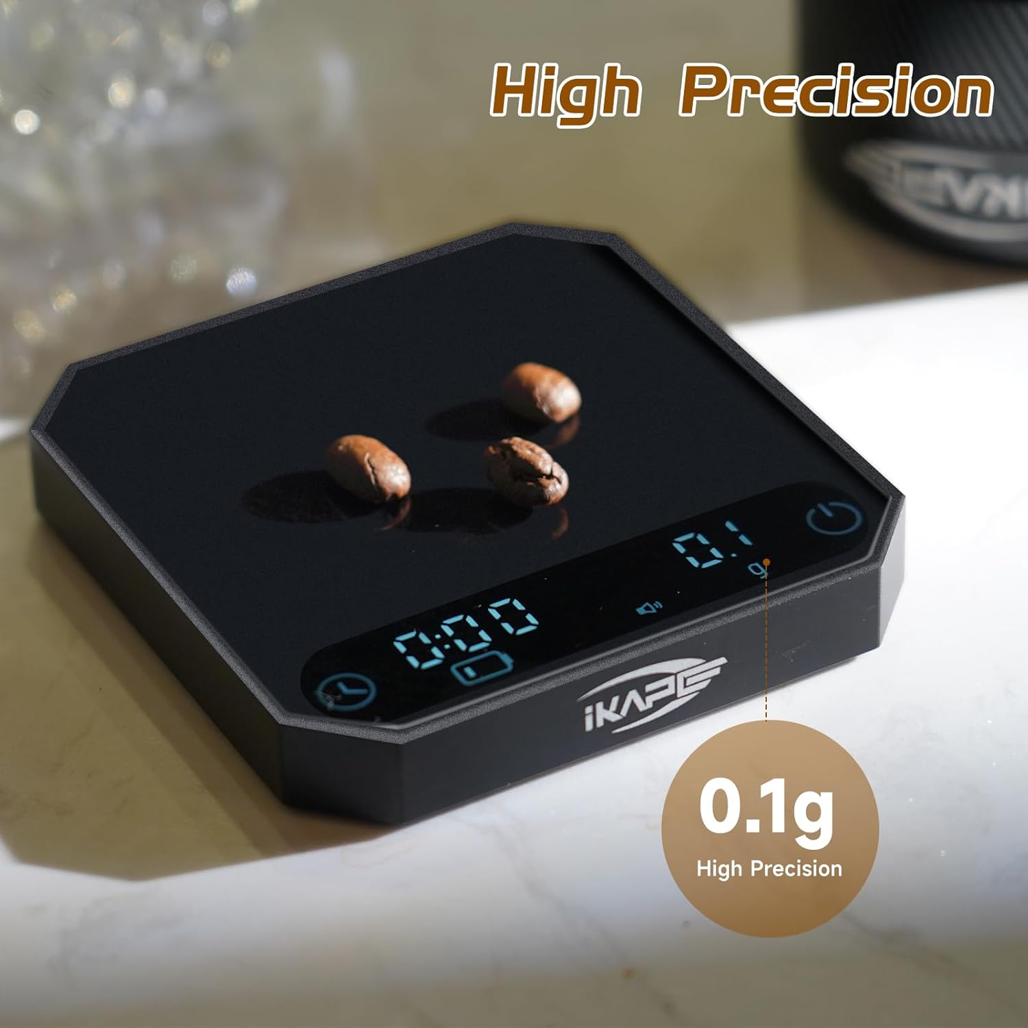 Effortless Cleaning & Steady Base – Included is a silicone mat, offering insulation, waterproofing, and anti-slip protection for your coffee gear. The scale’s base is also designed to stay steady. Opt for IKAPE’s coffee scale and indulge in exquisite espresso without hassle
