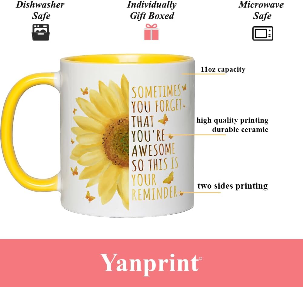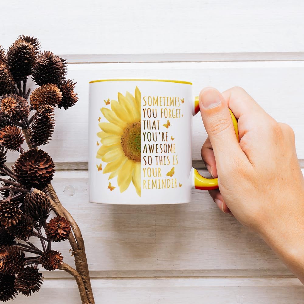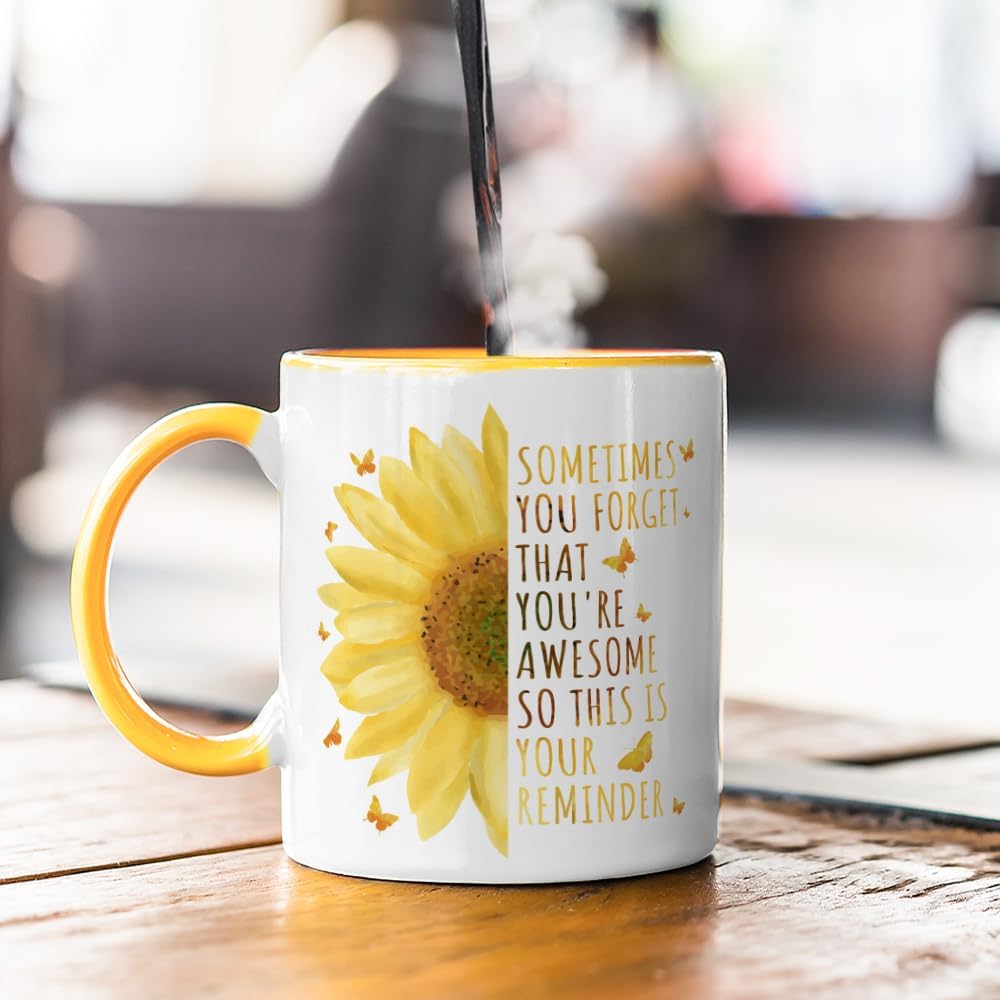 Inspirational Gifts For Women, Motivational Sunflower Mug, Encouragement Gifts for Teacher Coworker Friends Boss Sister Daughter Birthday Mothers Day 11OZ