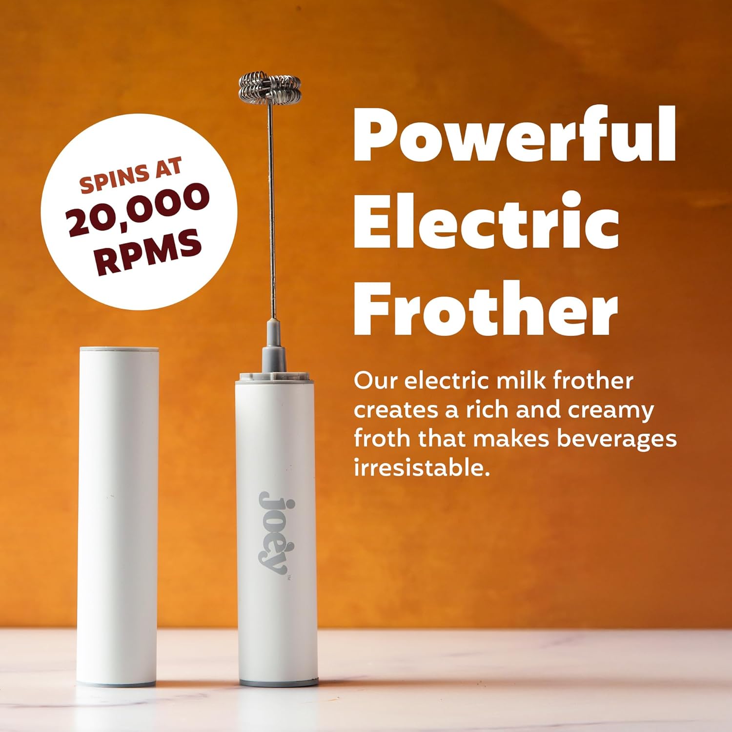 Clean, Creamy Foam In Seconds: Create smooth, café-style foam quickly with a powerful dual-speed motor and double whisk design. This handheld milk frother aerates milk and creamer evenly for lattes, cappuccinos, and cold foam, helping everyday drinks feel more polished with less effort