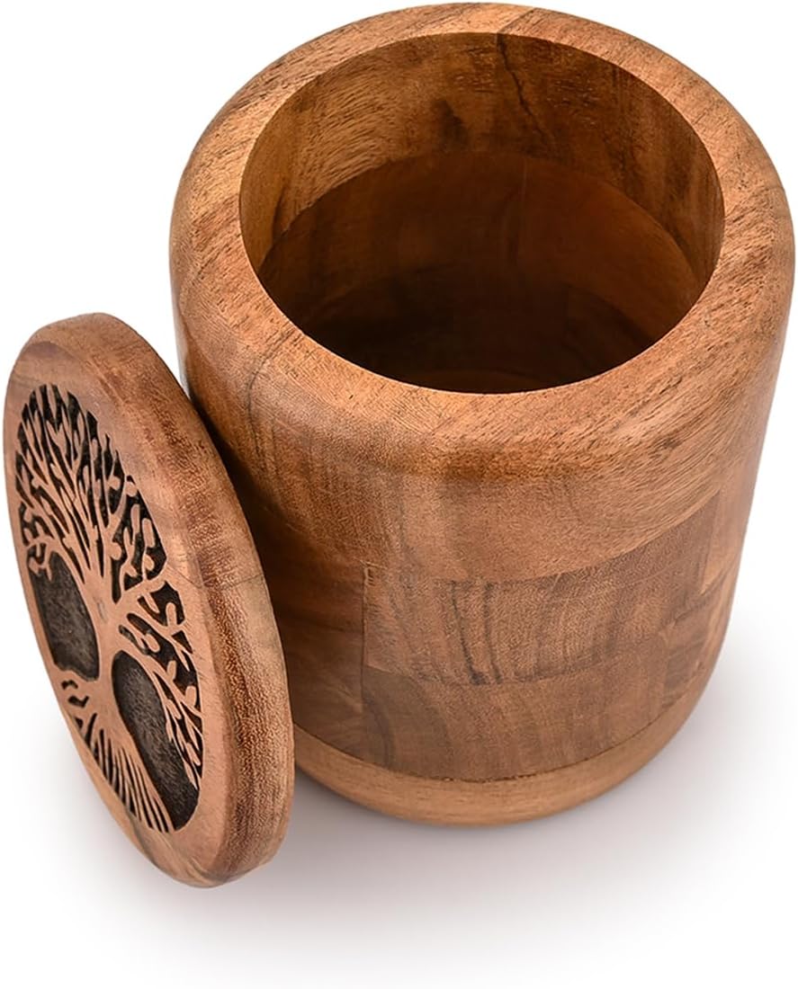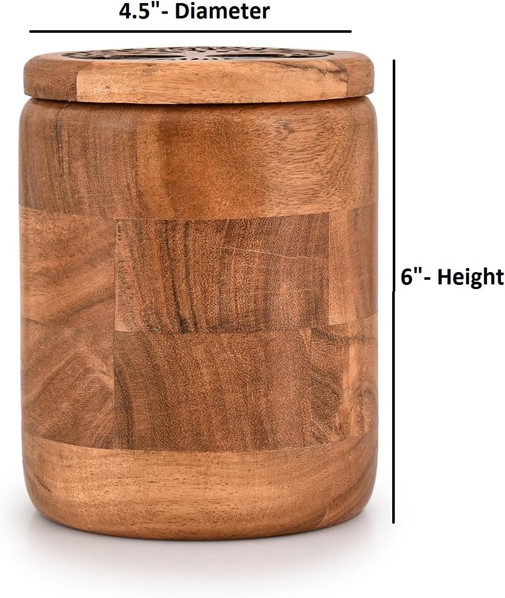 Kimona Food Jars & Canisters for Kitchen Counter, Wooden Food Storage Jars Tree Of Life Engraved on Lid Storage Container for Kitchen, Coffee, Flour (4.5″ X 4.5″ X 6″)