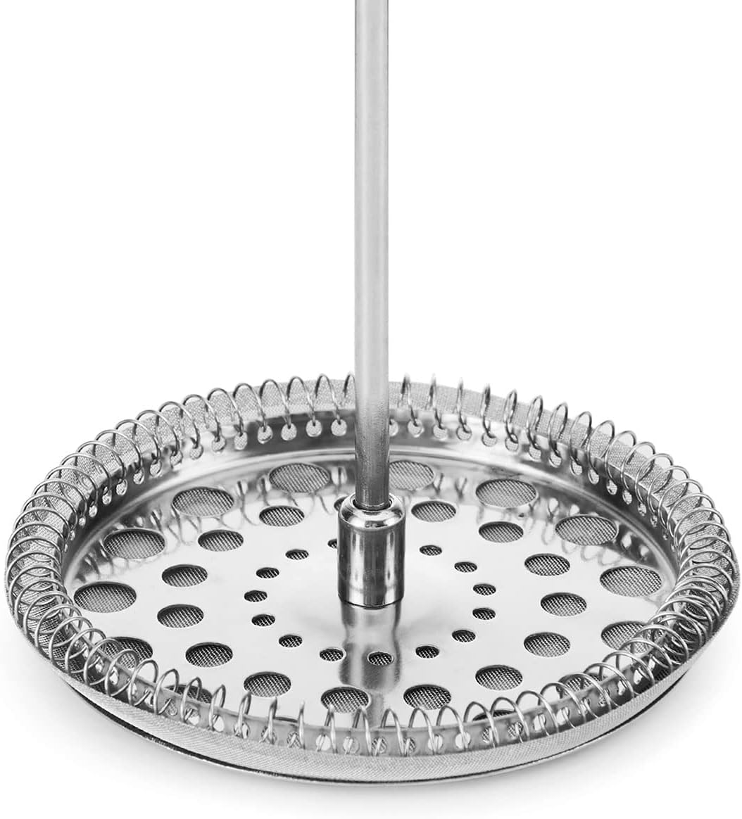 FINE-MESH FILTER: the reusable stainless steel filter traps grounds while letting smooth, flavourful coffee through