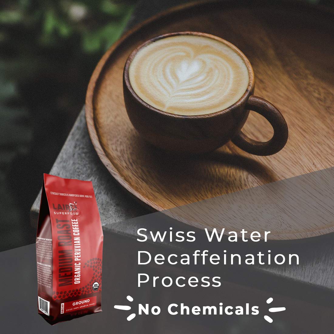Laird Superfood Peruvian Medium Roast Decaffeinated Ground Coffee, Chemical-Free Decaf Swiss Water Processed Ground Coffee, Gluten-Free, Dairy-Free, Non-GMO, Paleo, Keto Friendly, 12 oz. Bag