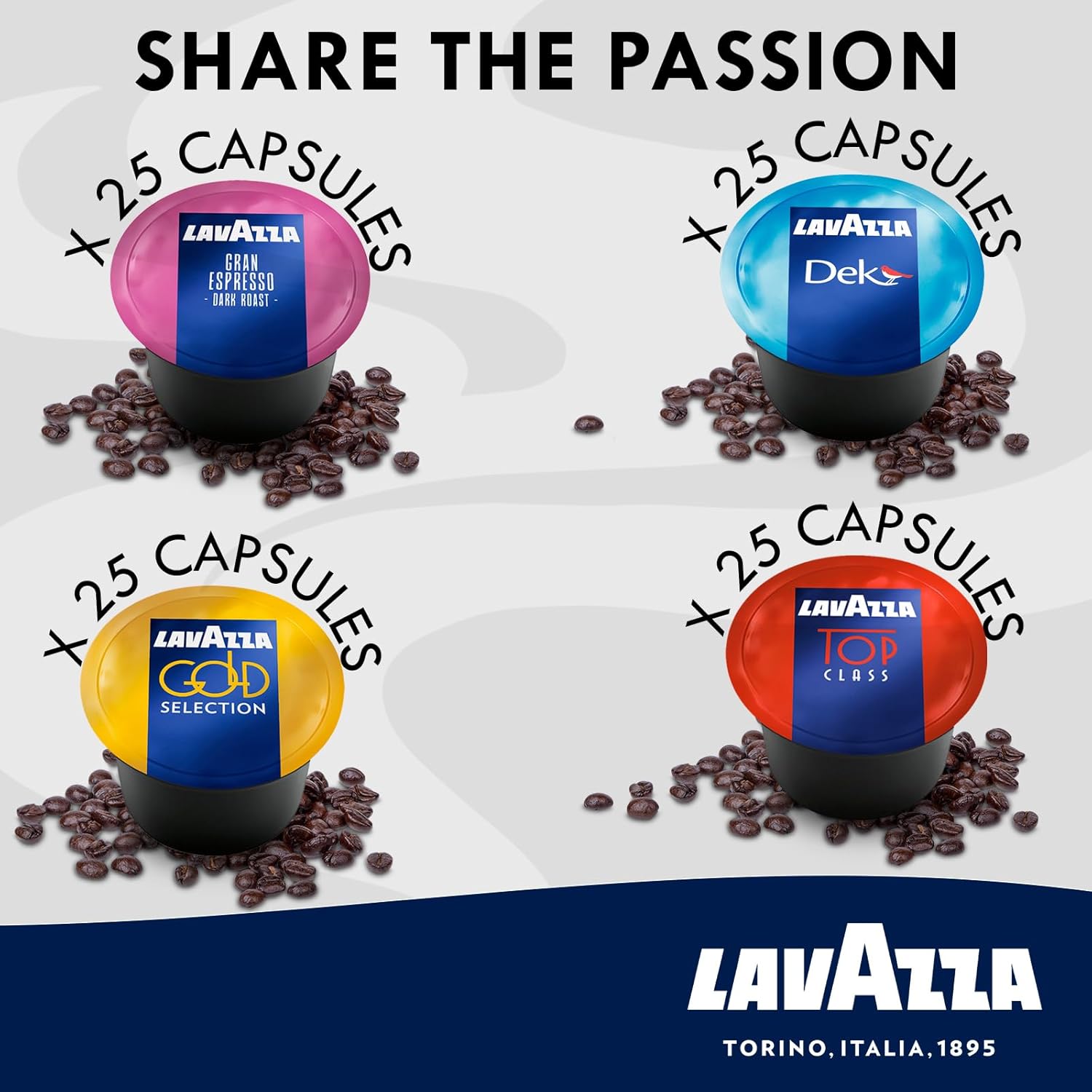 4 Best-Selling Lavazza Blends in One Pack- Includes Decaf Dek, Gran Espresso, Top Class, and Gold Selection — enjoy a premium variety of Lavazza Blue espresso capsules in one convenient bundle.